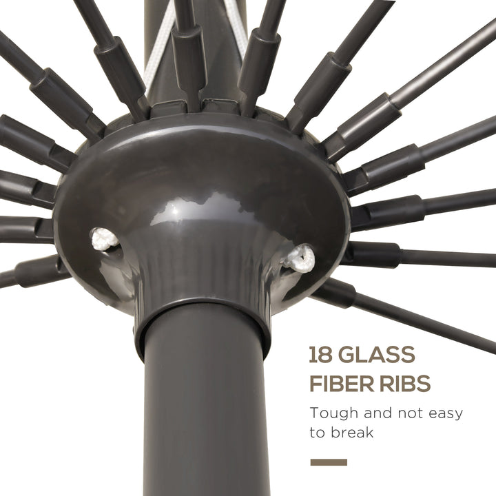 Keep yourself protected with the large garden umbrella from Outsunny. With a large polyester canopy, the balcony parasol offers plenty of shade underneath. The outdoor parasol is connected to a tough metal frame with 18 fibreglass ribs. Sunshades for garden with crank handle and tilt, which opens and closes the canopy smoothly and easily. Please note, that a base is not included.