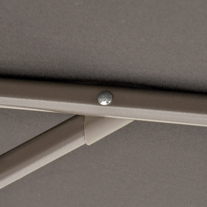 This stylish cantilever patio umbrella from Outsunny is a piece you'll love have hanging outside. The modern overhanging, offset design means you can keep shaded anywhere, without the hassle of a central pole getting in your way - bringing shade to large tables, sofas, bistro sets and so much more. The core structure is made from steel, so it's tough and sturdy. There are eight ribs connecting to the hanging parasol for extra support. Style and cool comfort, blended into one.