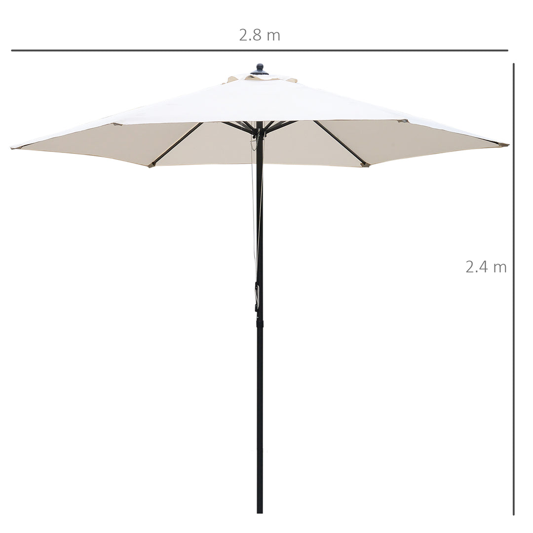 2.8m Garden Parasol Umbrella, Round Outdoor Market Table Umbrella, Parasol Patio Umbrella, 6 Ribs Manual Push, Sun Shade Canopy, Off-White