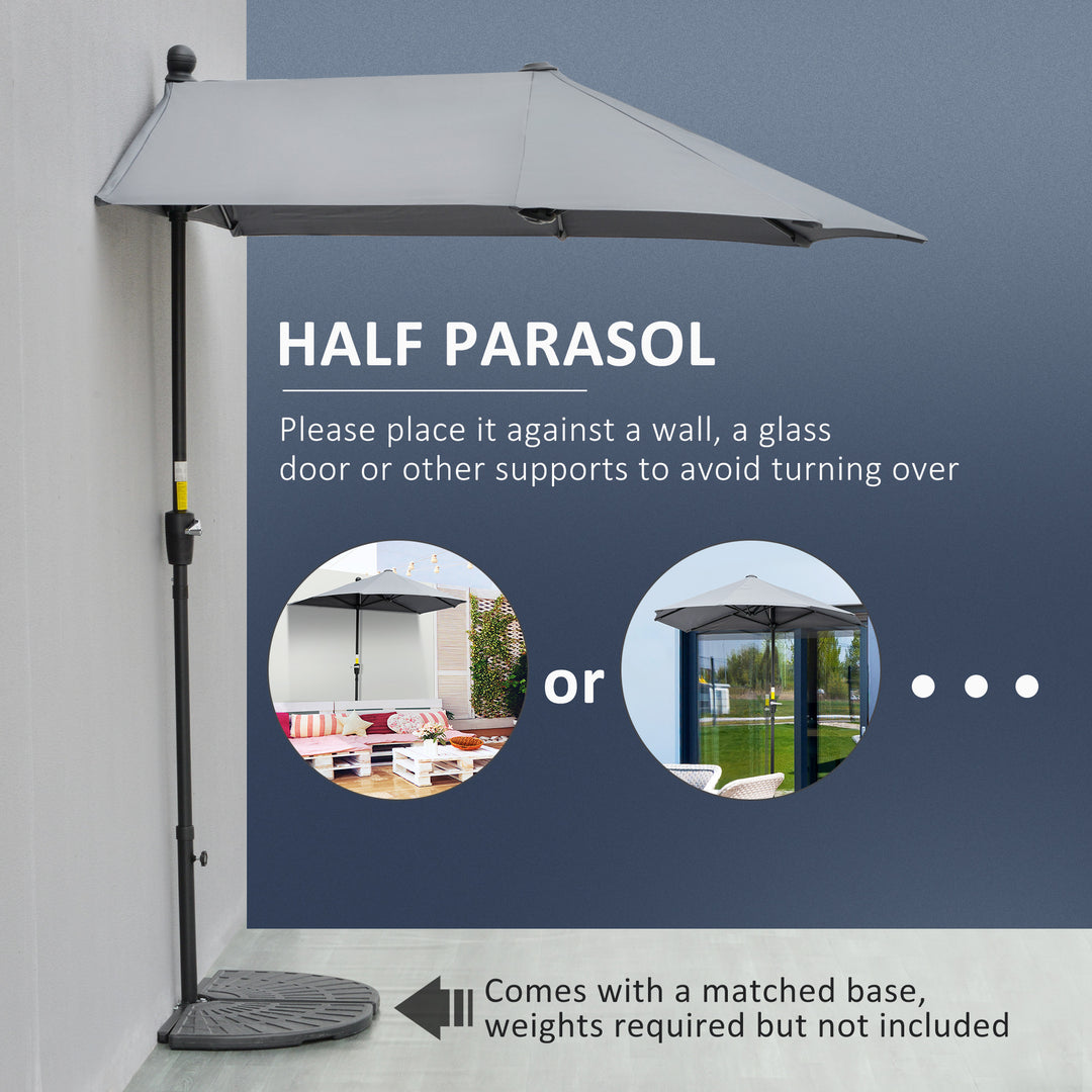Outsunny 2m Half Parasol Market Umbrella Garden Balcony Parasol with Crank Handle, Cross Base, Double-Sided Canopy, Dark Grey