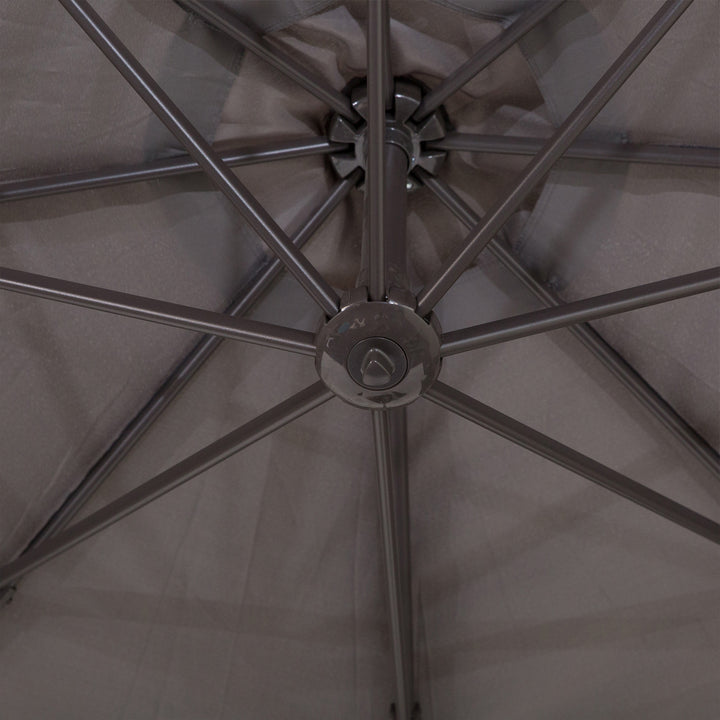 - The cantilever patio parasol rotates 360 degrees and can be tilted to various angles to suit you