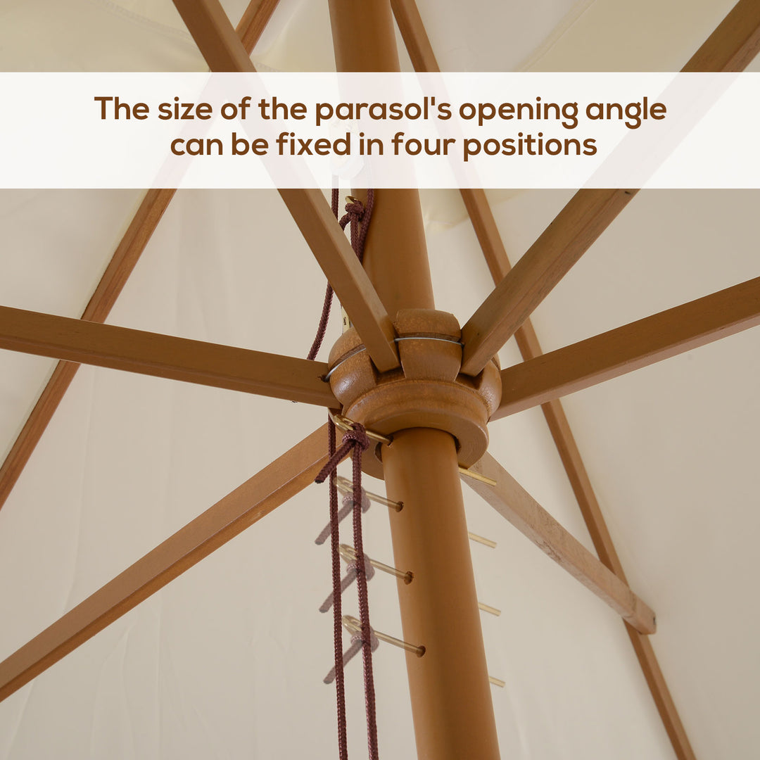 Stylishly make the most of the sun outdoors with this large garden umbrella from Outsunny. Built from wood, the main pole is extremely strong and stable and has been built to last for years to come. Made from 180g/㎡ polyester, the canopy will protect you from sunlight, UV and light rain, making it ideal for sitting out all day long. It's the ideal blend of beauty and functionality.