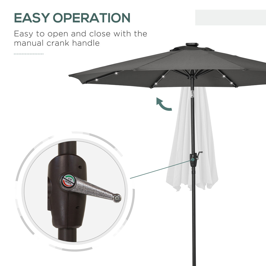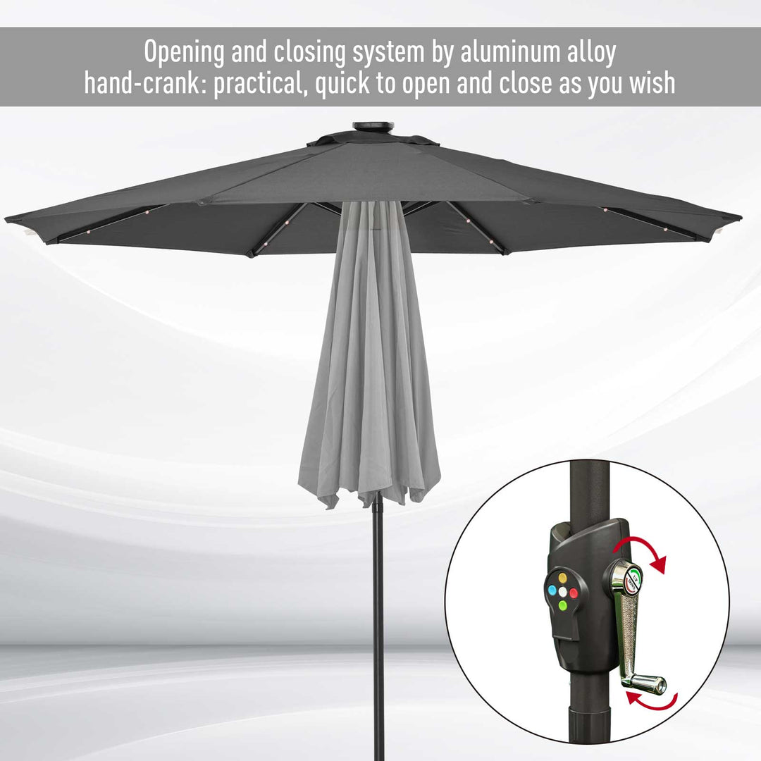 This Outsunny parasol umbrella is a perfect choice to give shade on those sunny days, the deck parasol has the ability to tilt for better protection. It is suitable for your patio, garden, and can be used with existing garden furniture. The steel structure and polyester fabric give support and long-lasting features. Parasol with lights and solar-powered Led lights with adjustable 4 colours. So when it gets dark you can still continue enjoying the outdoors.