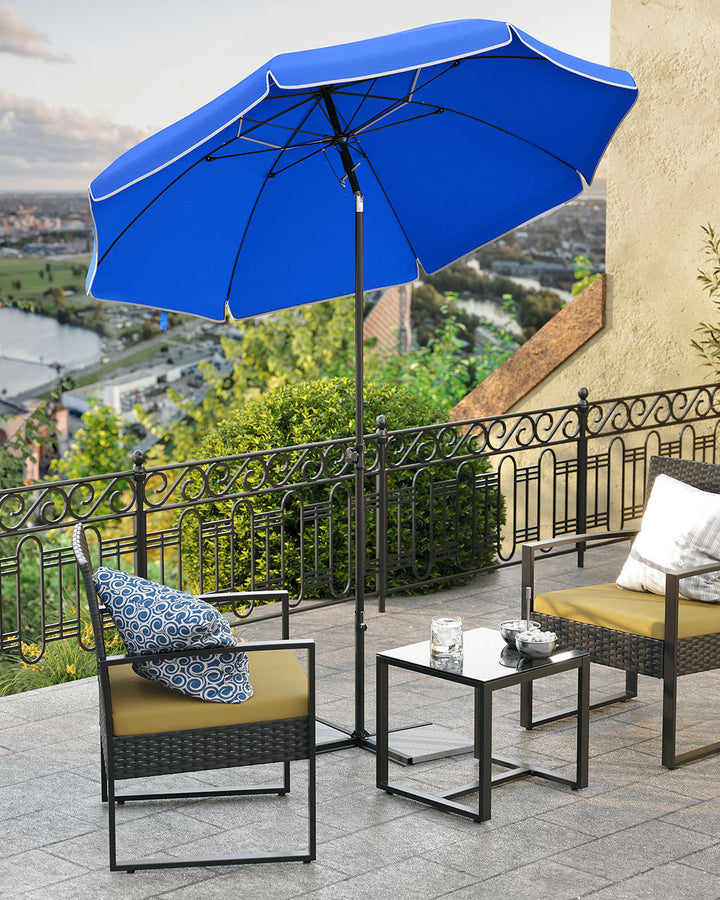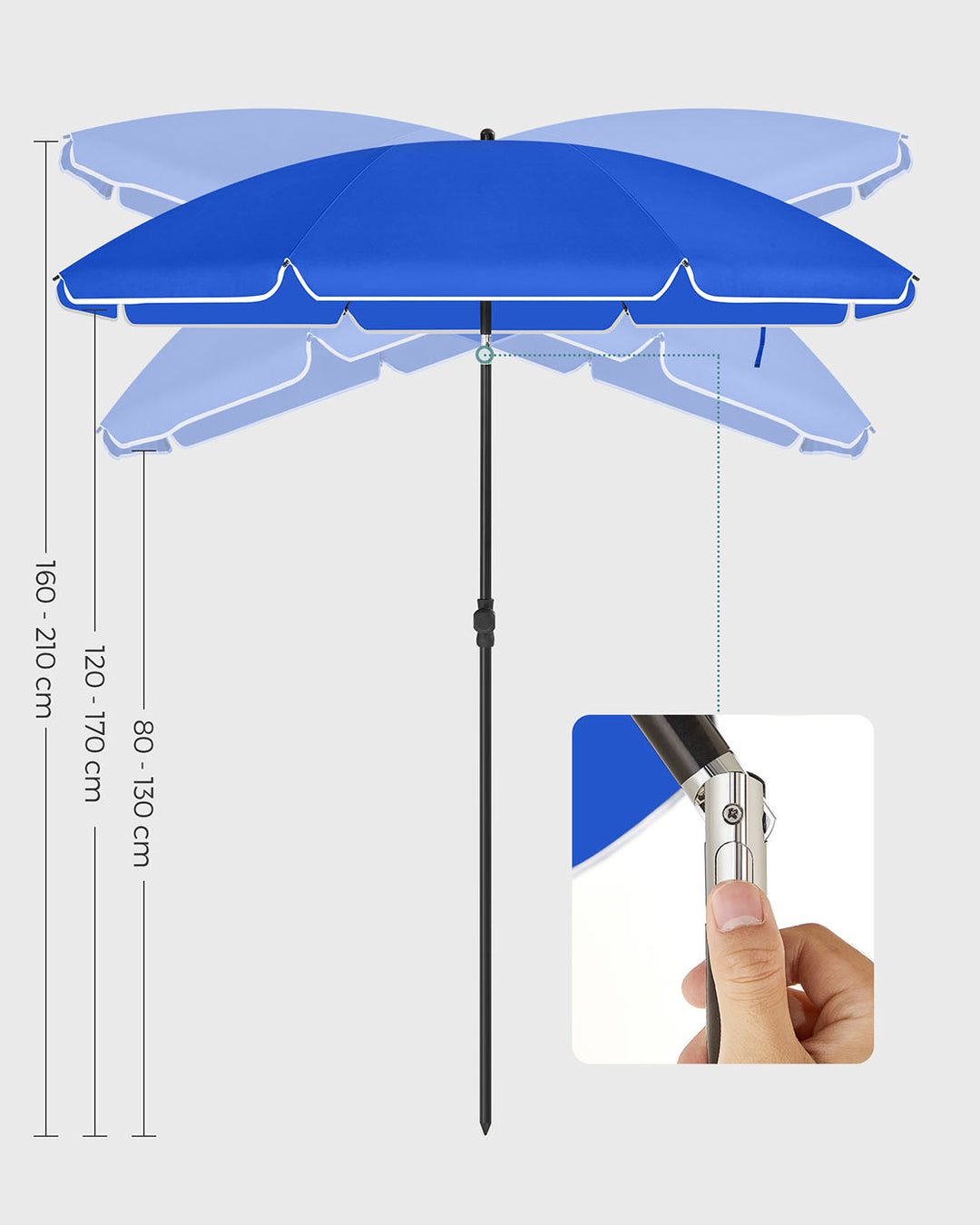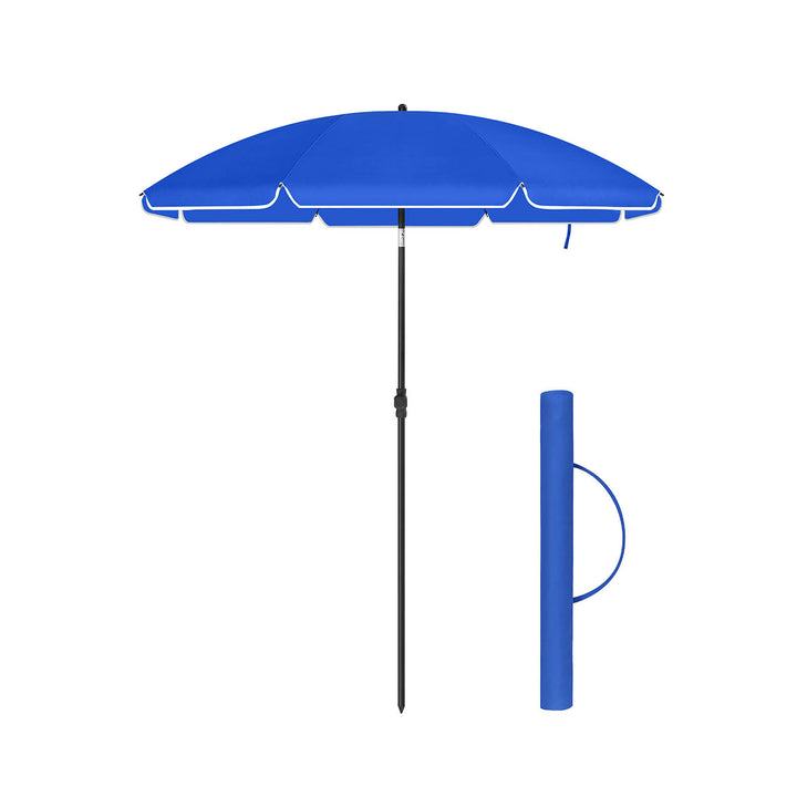 SONGMICS Ø 160 cm Parasol, Beach Umbrella, UV50+, Sun Protection, Octagonal Polyester Canopy, Fibreglass Ribs, Tilt Mechanism, Carry Bag, for Beach, Garden Balcony and Pool, Blue GPU60BU