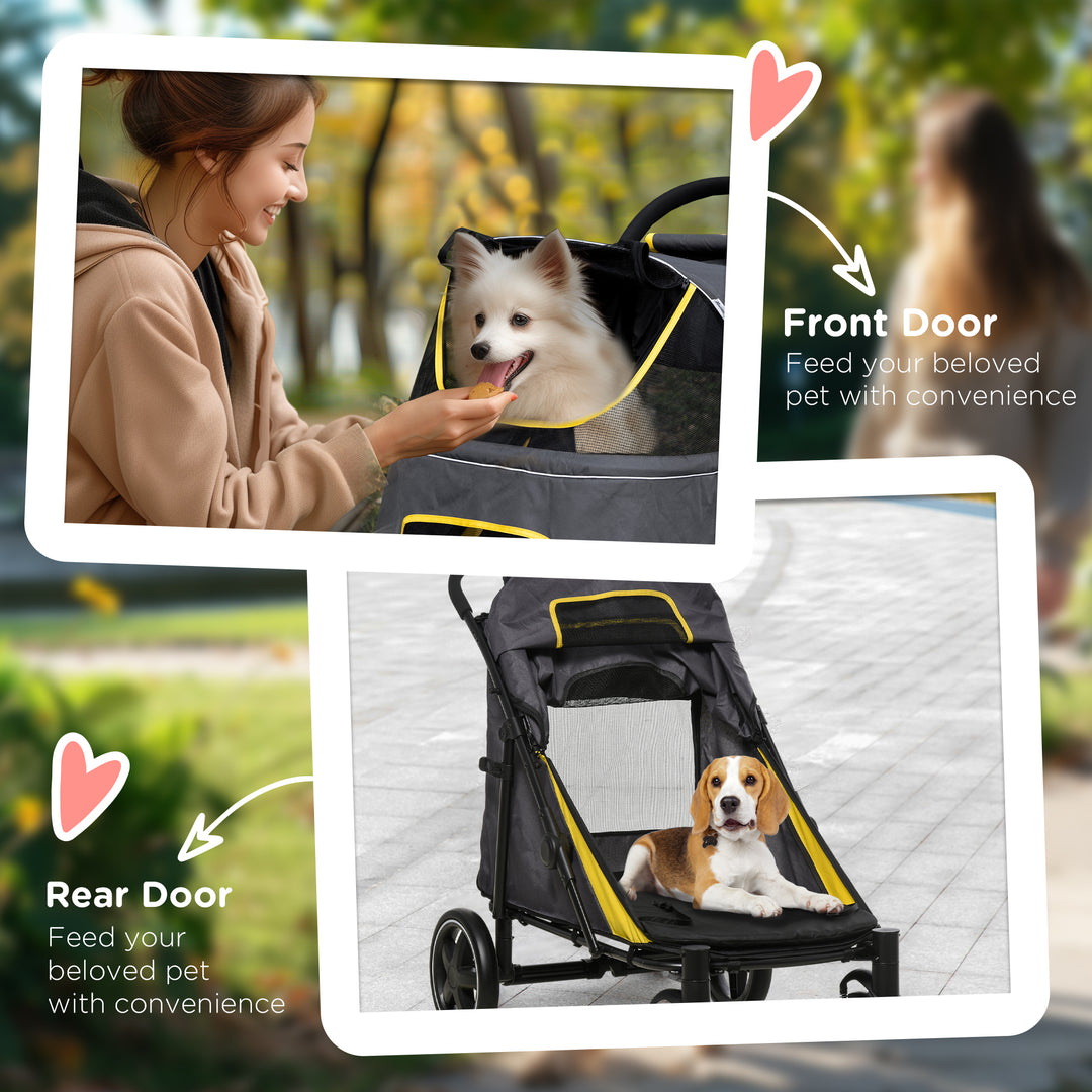 Going out should be smooth and simple for you and pets – this PawHut pet stroller makes sure of it. They'll sit in this spacious buggy, enjoying the wind flow through the mesh windows, keeping them cool and comfortable. The leashes ensure they're secure, whilst the EVA wheels with shock absorbers make their ride a lot smoother. The rear wheels have a break, so it'll stay in place when parked up. Made with a steel frame, it can hold up to 30kg – the perfect buggy for medium and large dogs.