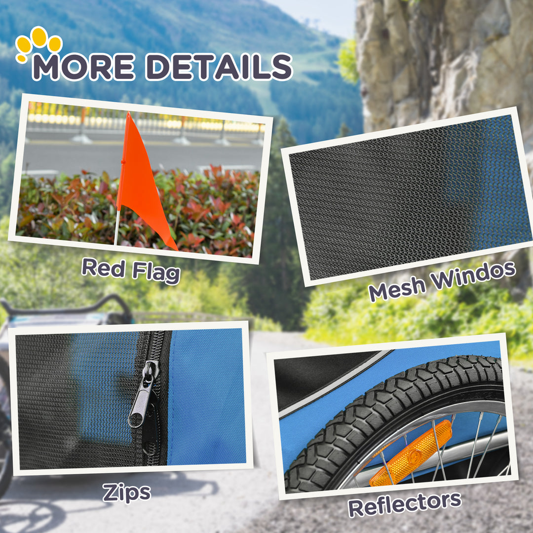 Drive your pet around the streets in style with this dog trailer for bicycle from PawHut. With a steel frame for a strong and reliable structure, the dog cart is made into a spacious design, featuring mesh windows all around to allow air to circulate properly, reflectors and a flag for visibility in the dark, zip fastenings for easy access and an safety anchor point for security. Made from weather resistant Oxford fabric, the body shelters your pet from light rain.