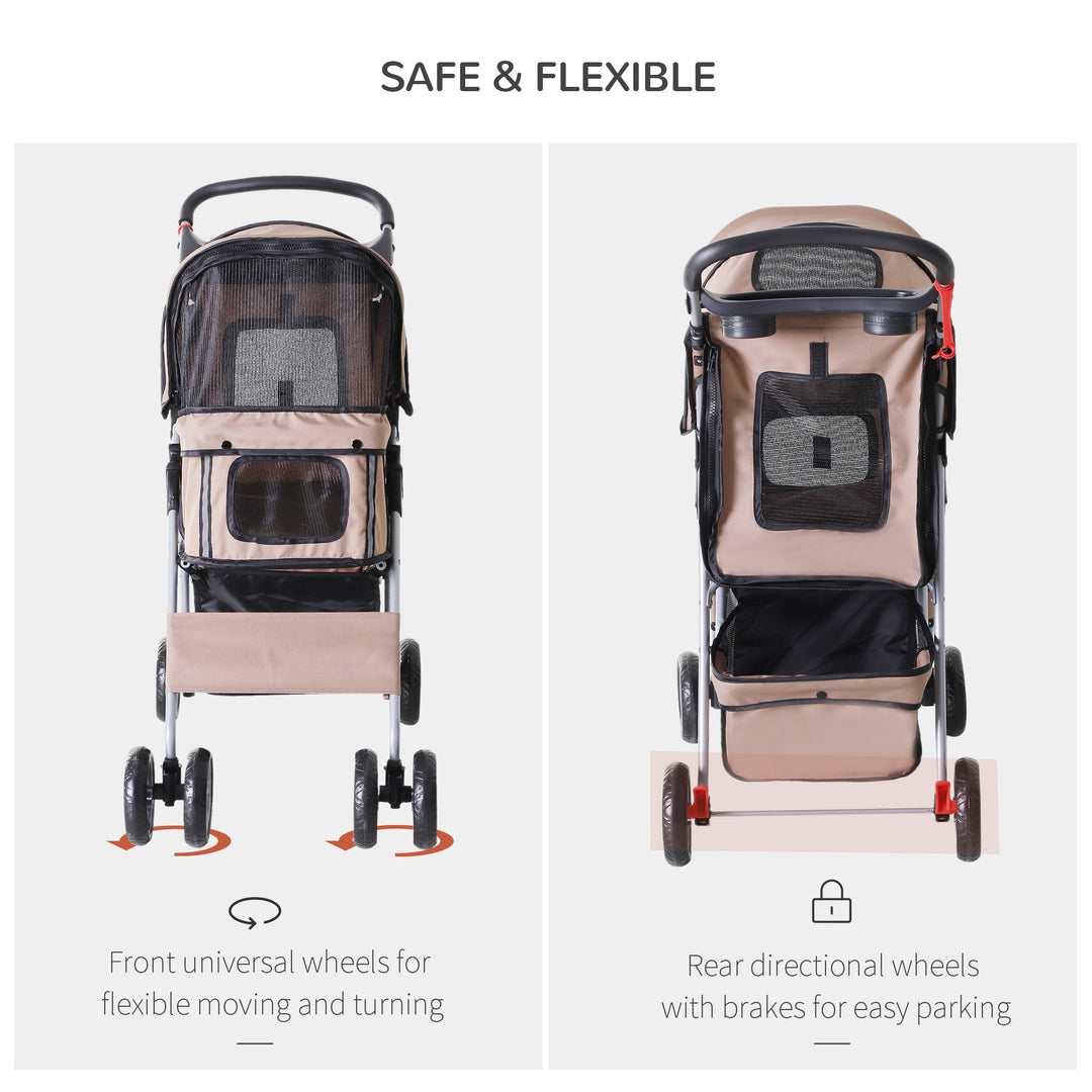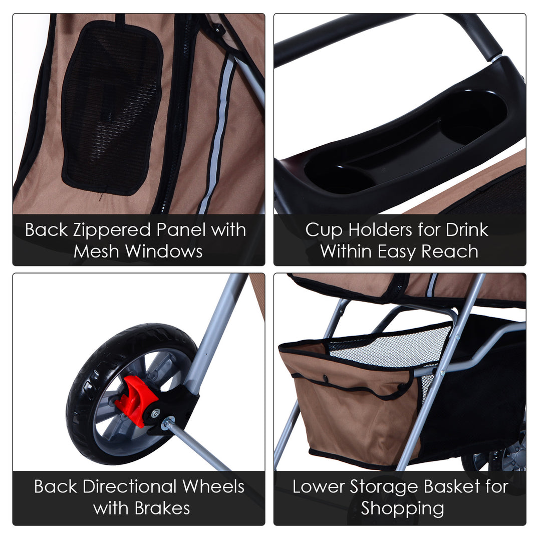 - Bottom storage compartment and cup holder for easy access to pet supplies and personal belongings