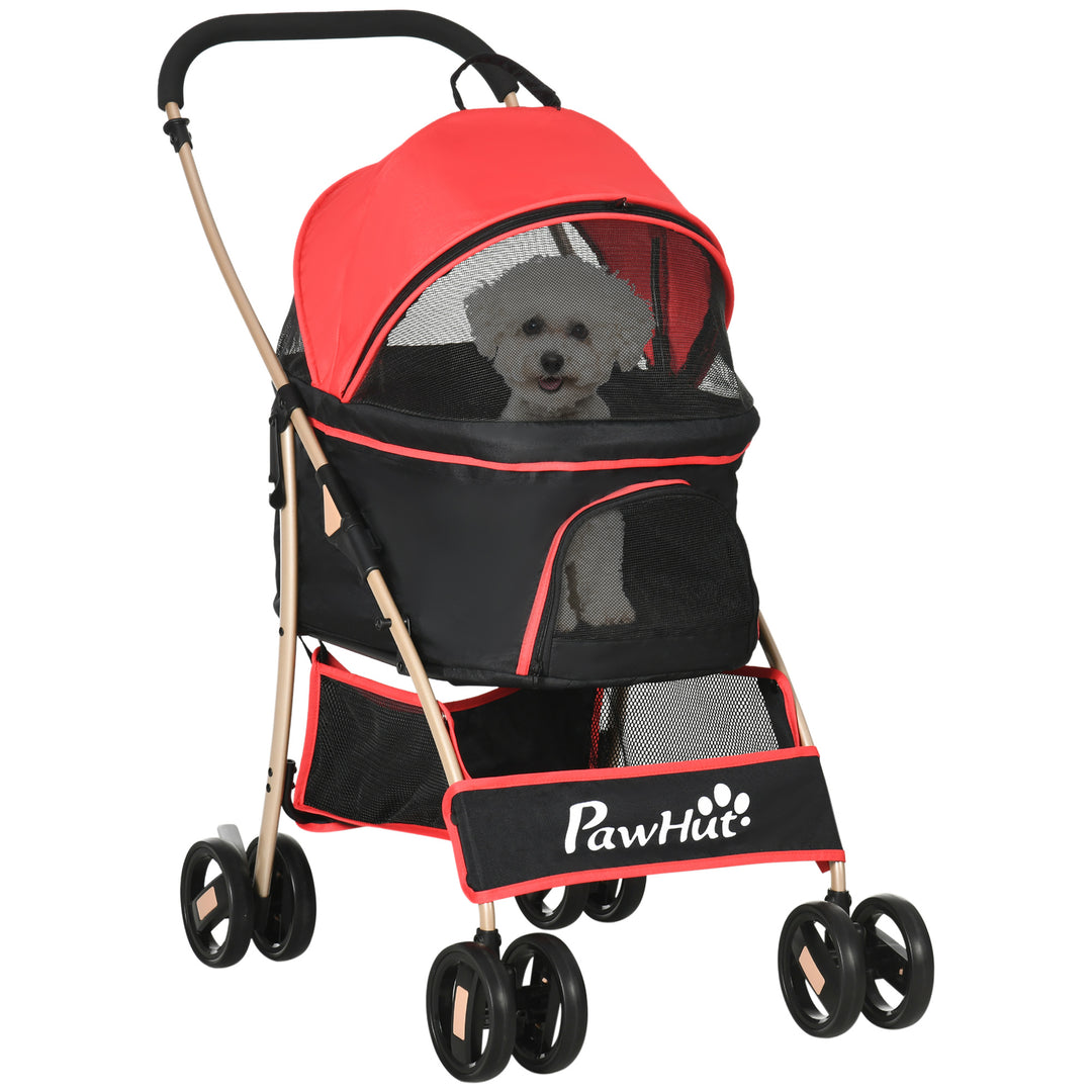 In need of a great pet stroller to take your furry little friend along with you? Then check out this PawHut dog stroller! This uniquely designed cat stroller is perfect for the pet owner on the go: the stroller has a detachable design that can be converted into a carrying bag. Furthermore, a basket is included, which allows you to put supplies, and the easy roll wheels mean it can go anywhere you can. Check out this pet stroller and take your friends wherever you want!