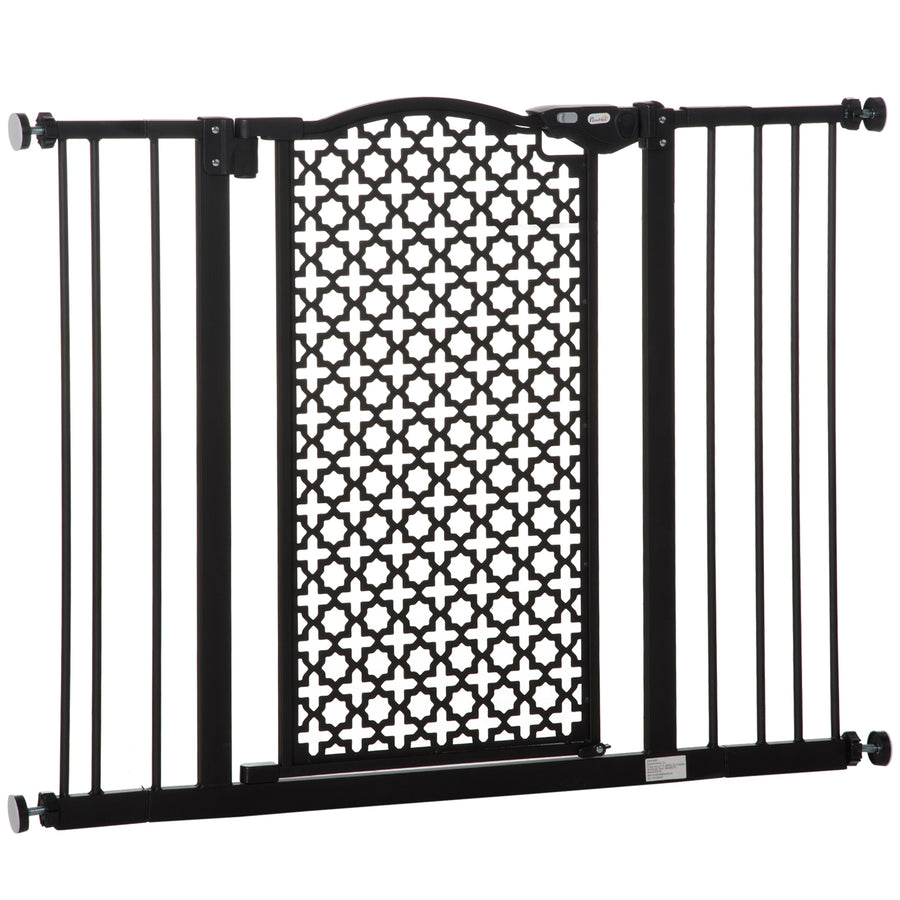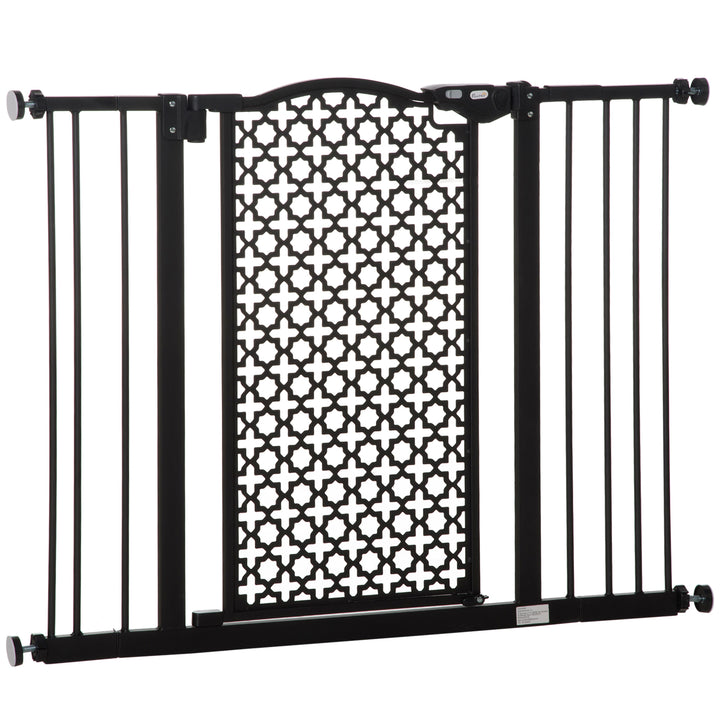 Need pets away from certain areas? This stylish PawHut pet gate is your solution. Made from solid steel for strength and durability, it stays firm and upright when in use. With an adjustable width of 74-105cm, it fits seamlessly into different-sized spaces. Simply pass through any time without your pet escaping - just slide and lift the handle. There's a double safety lock at the bottom, providing extra safety; a secure way to stop pets from going where they shouldn't.