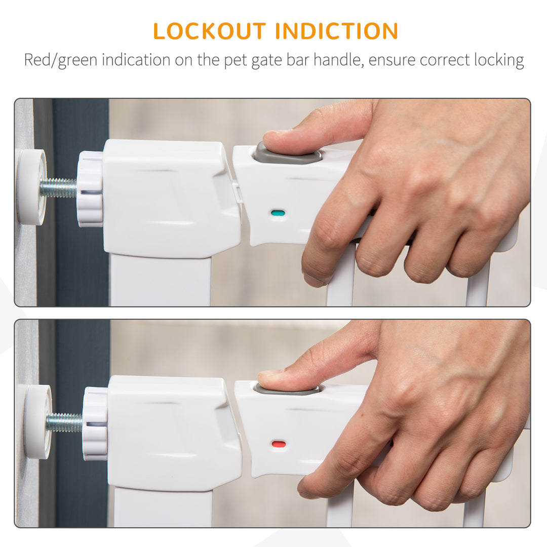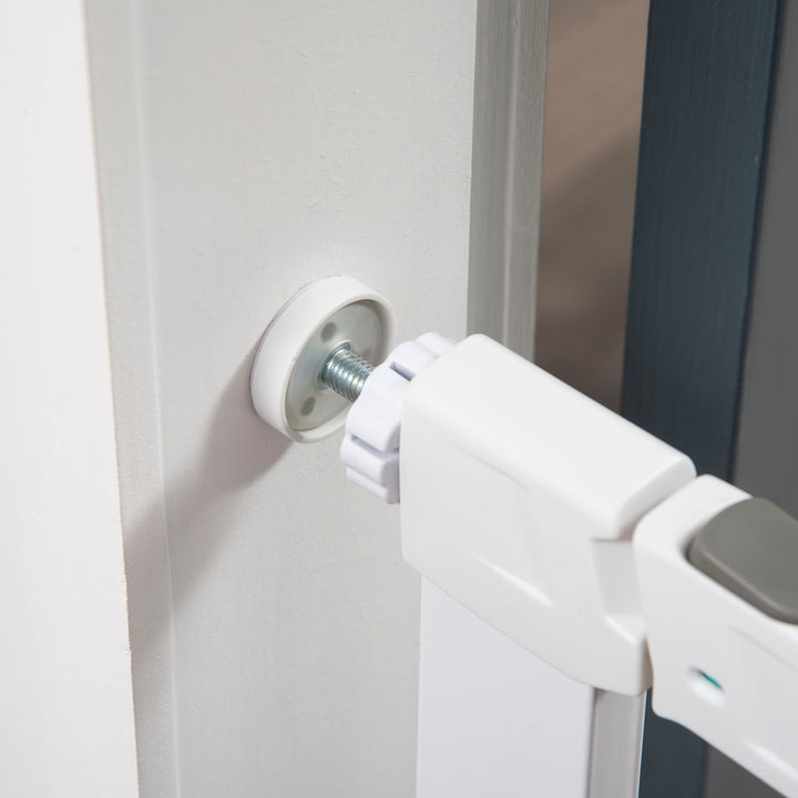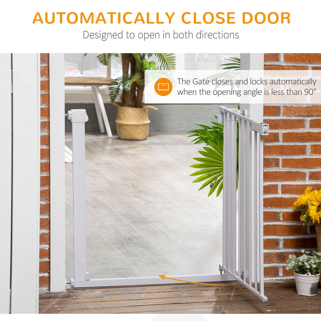 Keep pets away from rooms when required with this safety gate from Pawhut. Made from coated steel in white for strength and longevity, it is crafted into an expandable size, ranging from 75 cm to 82 cm wide, allowing it to fit into different sized spaces with ease. The pet gate with locking indication to ensure correct locking. When the door opening angle is greater than 90°, it will automatically close and lock. The door can be opened in both directions. Ideal for homes with pets.