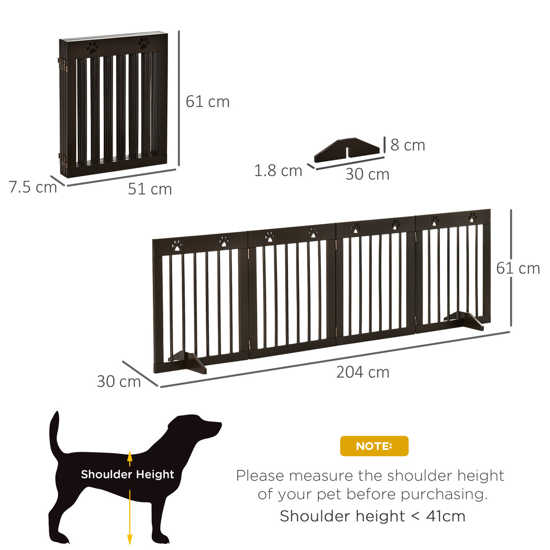 This PawHut dog gate for doorway will safely and effectively limit the range of your pet's activities. It's formed of four MDF panels, each connected by hinges so you can bend it to different shapes when required. When not in use, it can be easily folded up to save space. Suitable for doorways, stairs, entrances and more, this is a great product to help keep pets protected when you need that extra helping hand.