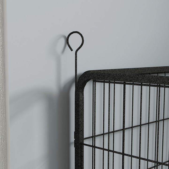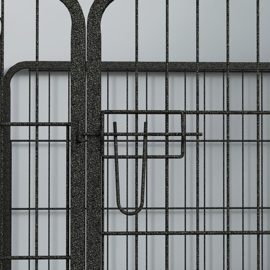 Made of premium metal tubes and wires, this pet playpen will be the perfect secure area for a variety of pets. 4 stakes to secure the playpen in place. Thanks to its knockdown design, the playpen is easy for transport and storage when not in use. It comes with a step-through door to facilitate the entrance for your pet. The built-in lockable latch prevents your pets from break out and keeps pets safely inside. This pet playpen can be used both indoor and outdoor.