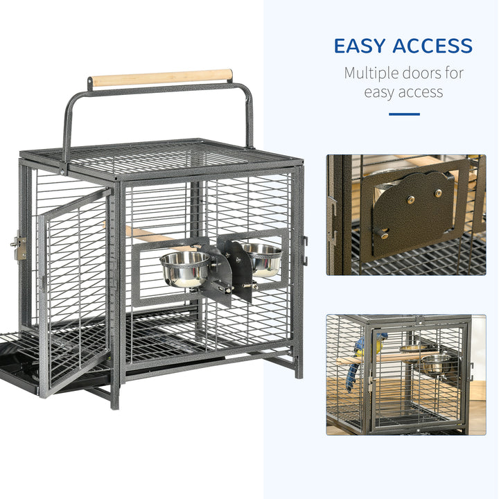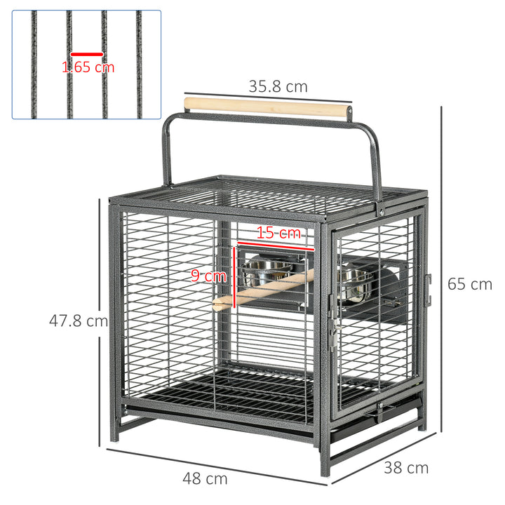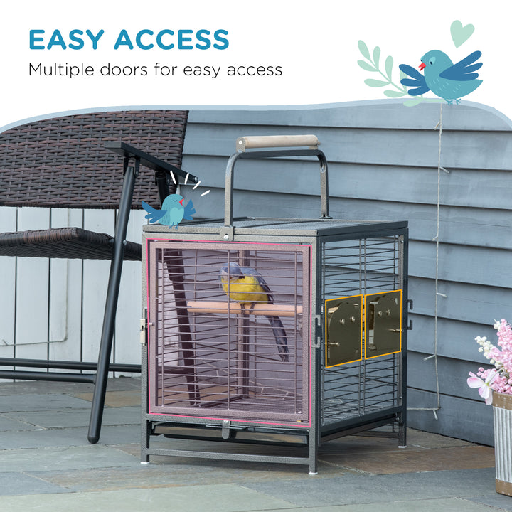 Travelling with pet birds has never been easier, thanks to this PawHut bird travel cage. Hassle-free for you and them, it's lightweight and compact and has a big handle on the top, so you'll carry with ease. Pets will rest on the sturdy perches, as they enjoy their food and water from the provided bowls. Removable tray at the bottom for quick cleaning, keeping their space tidy, whilst the steel wire keeps pets safely inside, making sure they don't escape; a secure home - perfect for on-the-go.