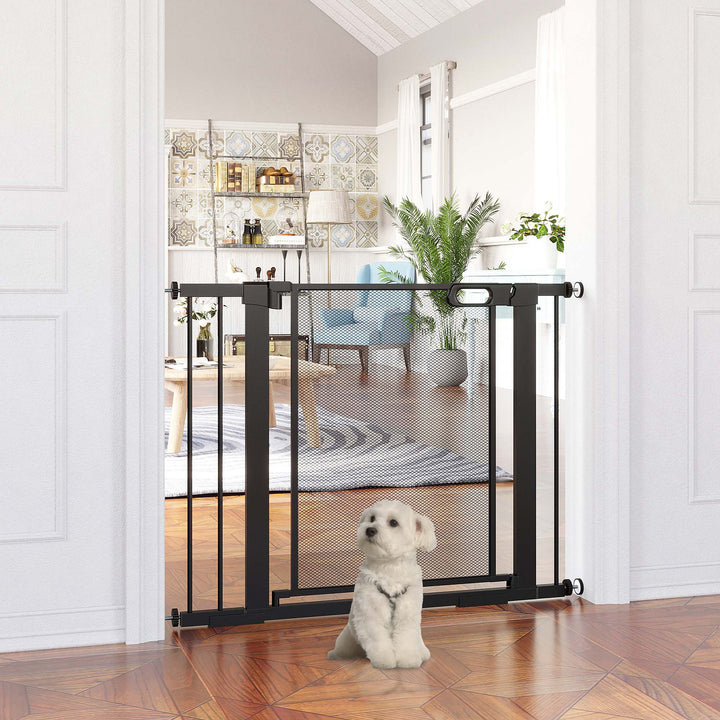 This pressure fit stair gate from PawHut can keep pets out of restricted areas. It has a width that can be adjusted from 75-103 cm to fit various locations and is appropriate for stairways and halls. A certain amount of convenience is offered by the automatic closure feature. For your pets' security, the mechanical closing latch demands that the button be hit in order to open the gate. It is a secure and reliable way to prevent pets from venturing into inappropriate areas.