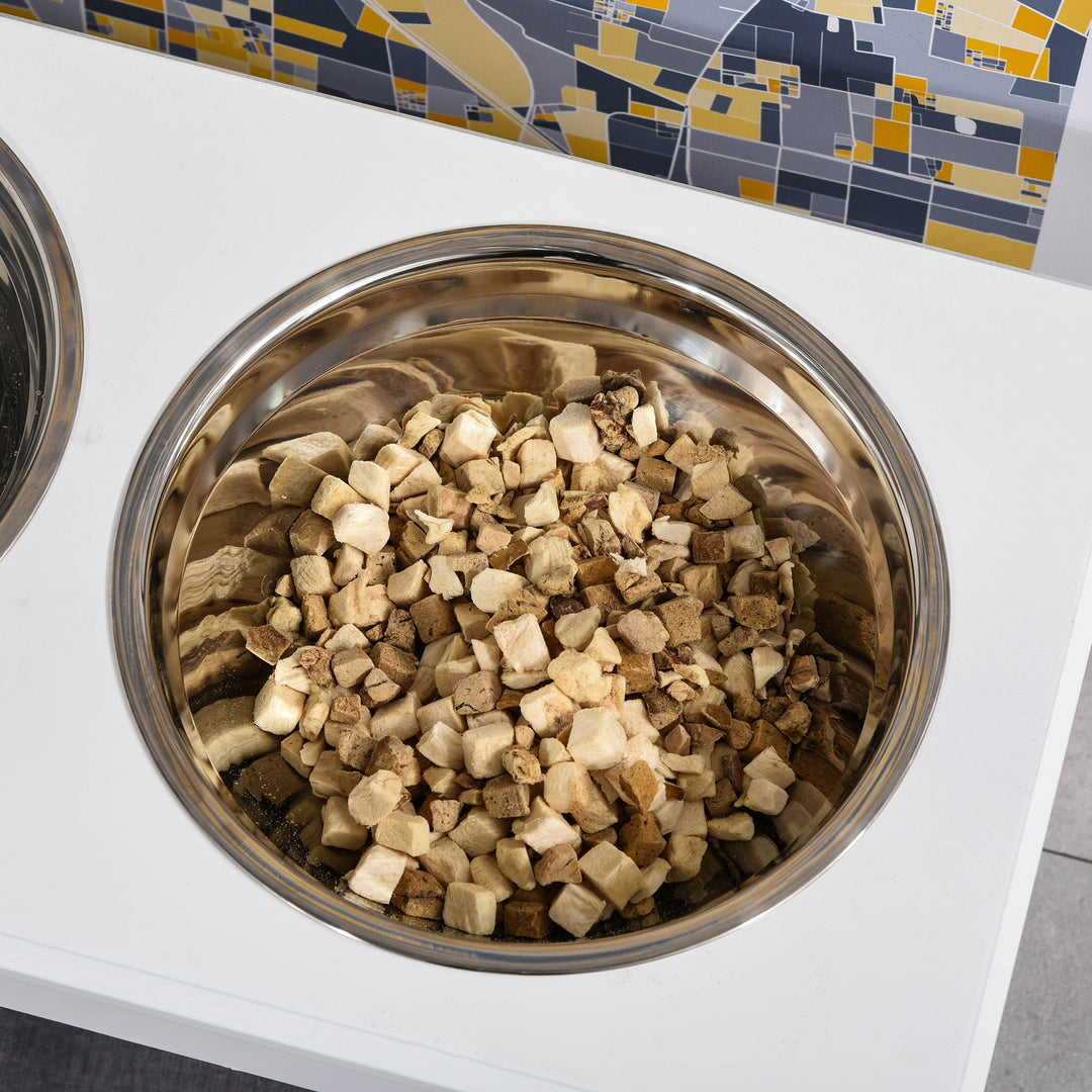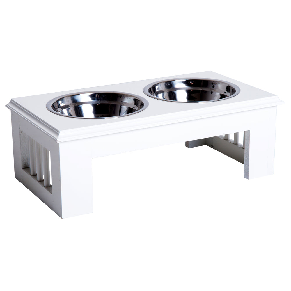 Make meal times easier for your pets with this cat bowl with stand from PawHut. With an MDF base that has been built to provide years of use, it features two round stainless steel bowls. Durable, hygienic and dishwasher safe, both bowls are easy to look after and safe for your pets to use and are great used together for both food and drink. In an elevated design, the base helps make eating cleaner and easier for your pets, aiding digestion and putting less strain on the neck.