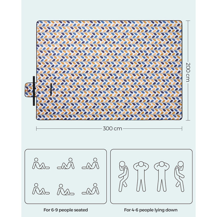 SONGMICS Picnic Blanket 300 x 200 cm Leaf Pattern