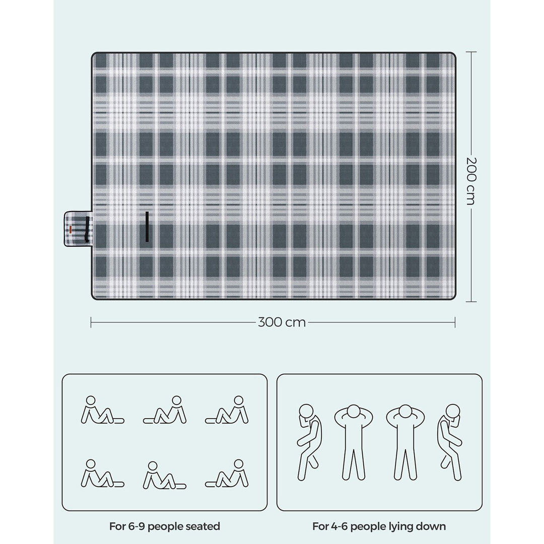 SONGMICS Picnic Blanket 300 x 200 cm Grey and White