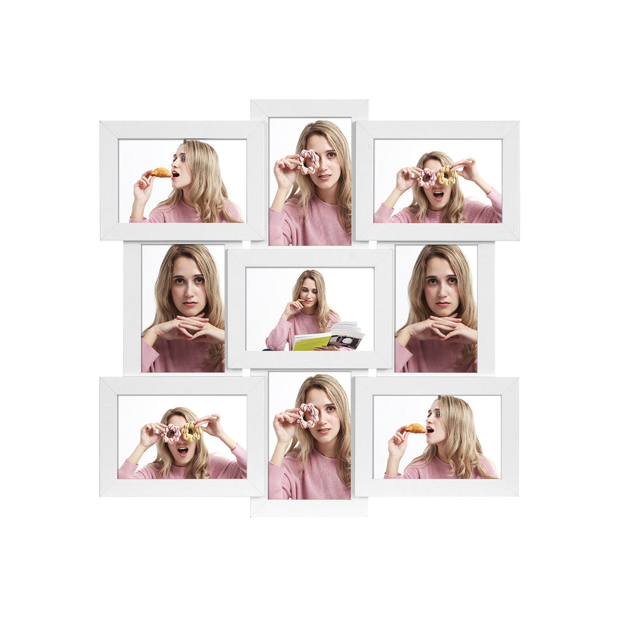 SONGMICS Picture Frames Collage for 9 Photos, 10 x 15 cm (4 x 6 Inch) Photos, Wall Mounted, Multi Family Photos, MDF, Glass Panel, White RPF029W01