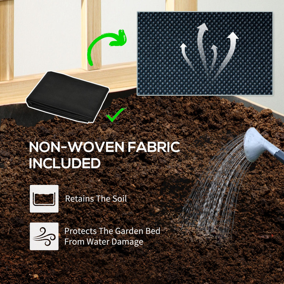 This Outsunny raised garden bed comes with a back trellis - grow plants, flowers, vegetables and let vines and more wrap themselves around the back. Wooden structure makes it strong, with a paint coating for gentle protection. Planter comes with fabric bag to hold the soil together, with two small holes for gentle water drainage.