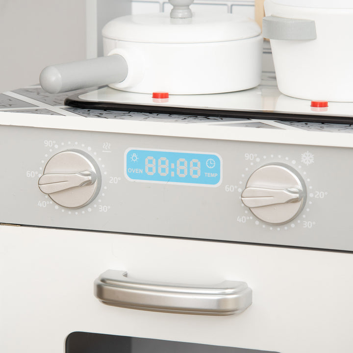HOMCOM Kids Kitchen Play Cooking Toy Set, Educational Pretend Role Playset Game w/ Sound & Light Effect, Battery Operated Cooktop, Ice Machine