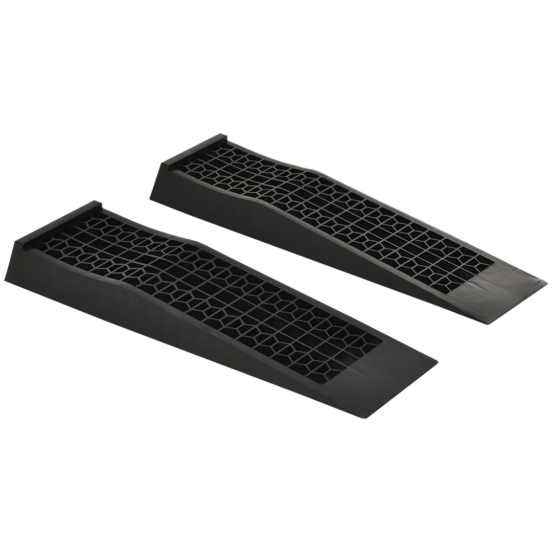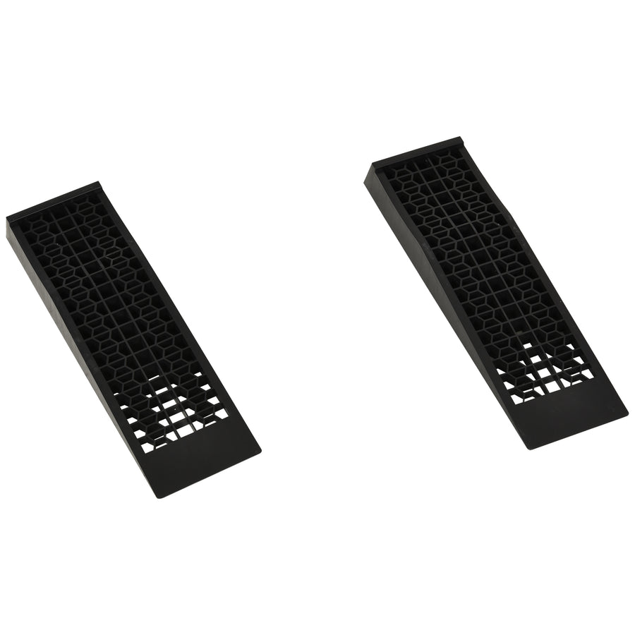 Elevate your vehicles easily and safely with these heavy duty car ramps from HOMCOM. Each product is made from solid plastic to hold up to 1500kg, making it suitable for cars, SUVs and small vans. Textured on top in a grid formation, the non-slip surface ensures your wheels won't sway around when moving. A safe way for you to repair your cars underneath.