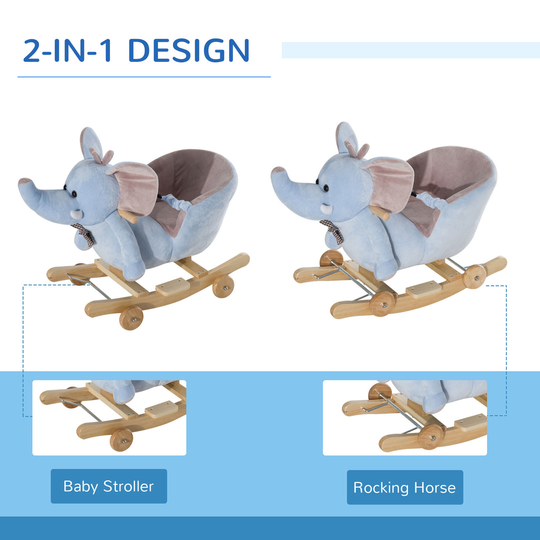 Plush Baby Ride on Rocking Horse Elephant Rocker with Wheels Wooden Toy for Kids 32 Songs (Blue)