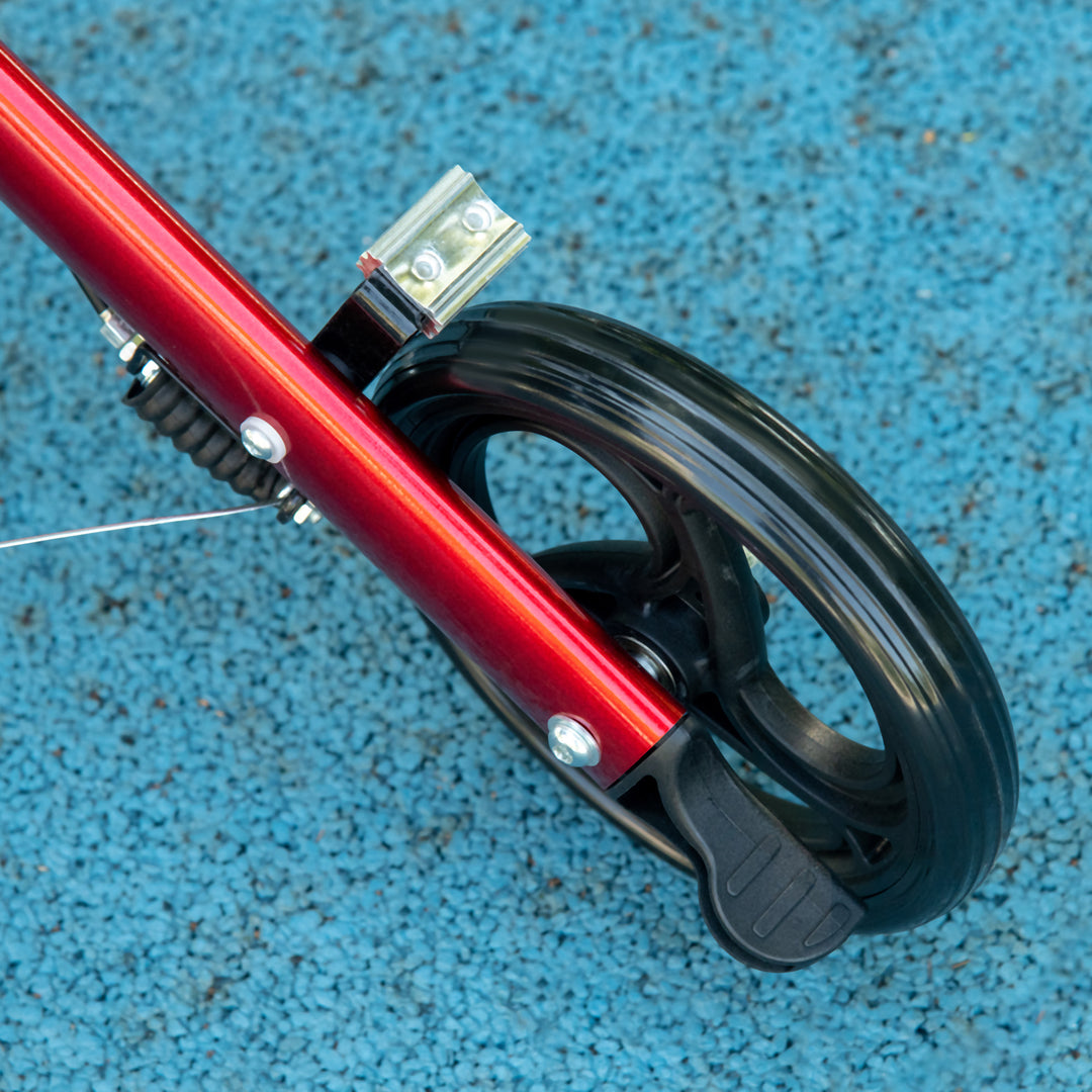 A walking frame with wheels, this HOMCOM rollator is an excellent mobility piece which hands your independence to you, on your own terms. The aluminium frame means a strong, supportive structure - also lightweight so it can be pushed around easily. It features a handy front bag for keeping your belongings with you on-the-go, with a seat so you can take a rest whenever you want. Four wheels to move around easily, completed with brakes to stop it rolling easily.