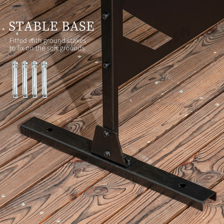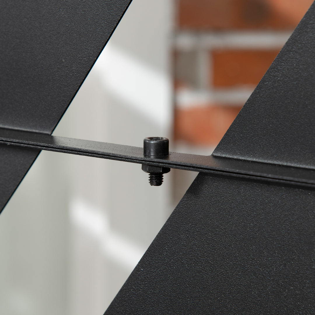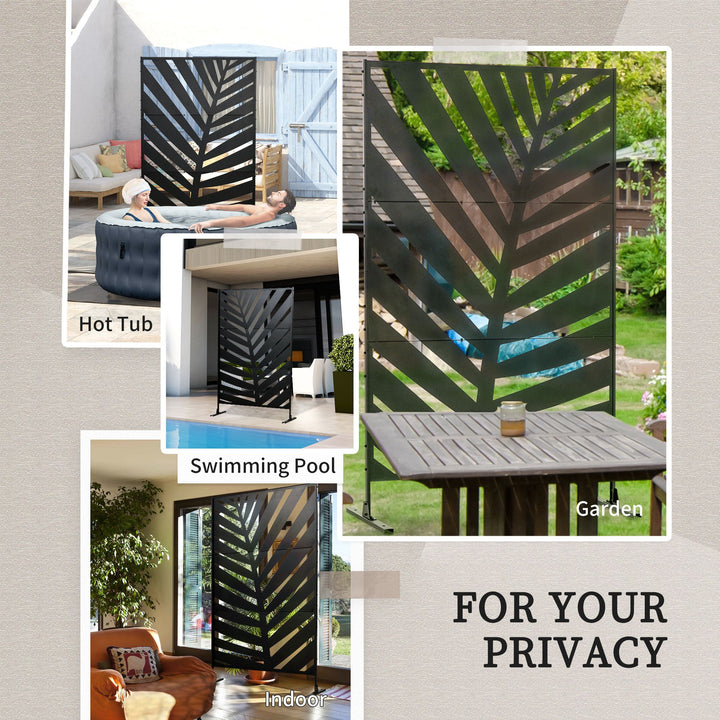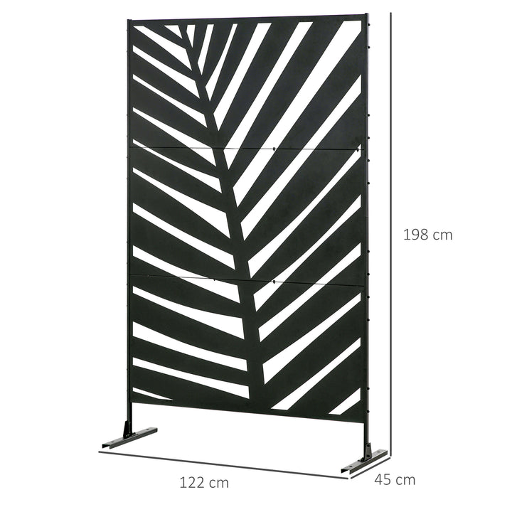 A dividing screen for patio, garden, outdoor - and even indoor spaces. This Outsunny 198 x 122cm piece will bring a pretty and decorative touch to your space, whilst creating a private section whenever you require it. It's made from steel for strength, crafted into a cut-out leaf design for a beautiful look which fits in effortlessly with your garden surroundings. Comes complete with two long legs for balance.