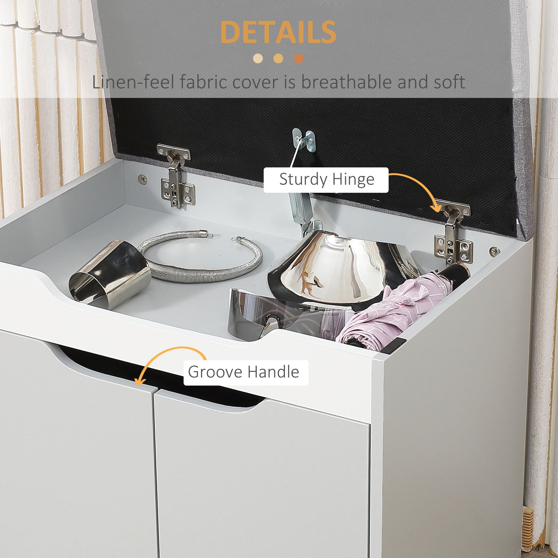 • Flip-up design with hidden storage is space-saving