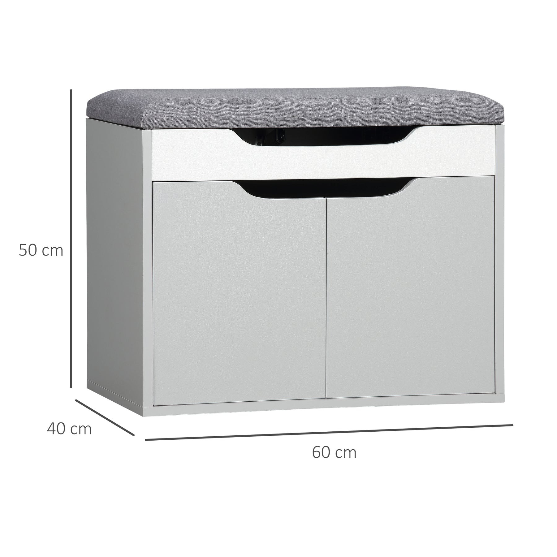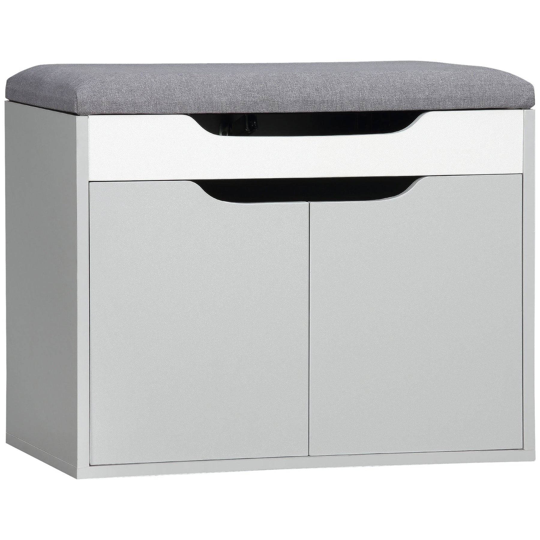 HOMCOM Shoe Bench with Cushion, Modern Storage Bench with Padded Seat, 2-tier Cabinet, Hidden Storage, Adjustable Shelf for Living Room, Light Grey