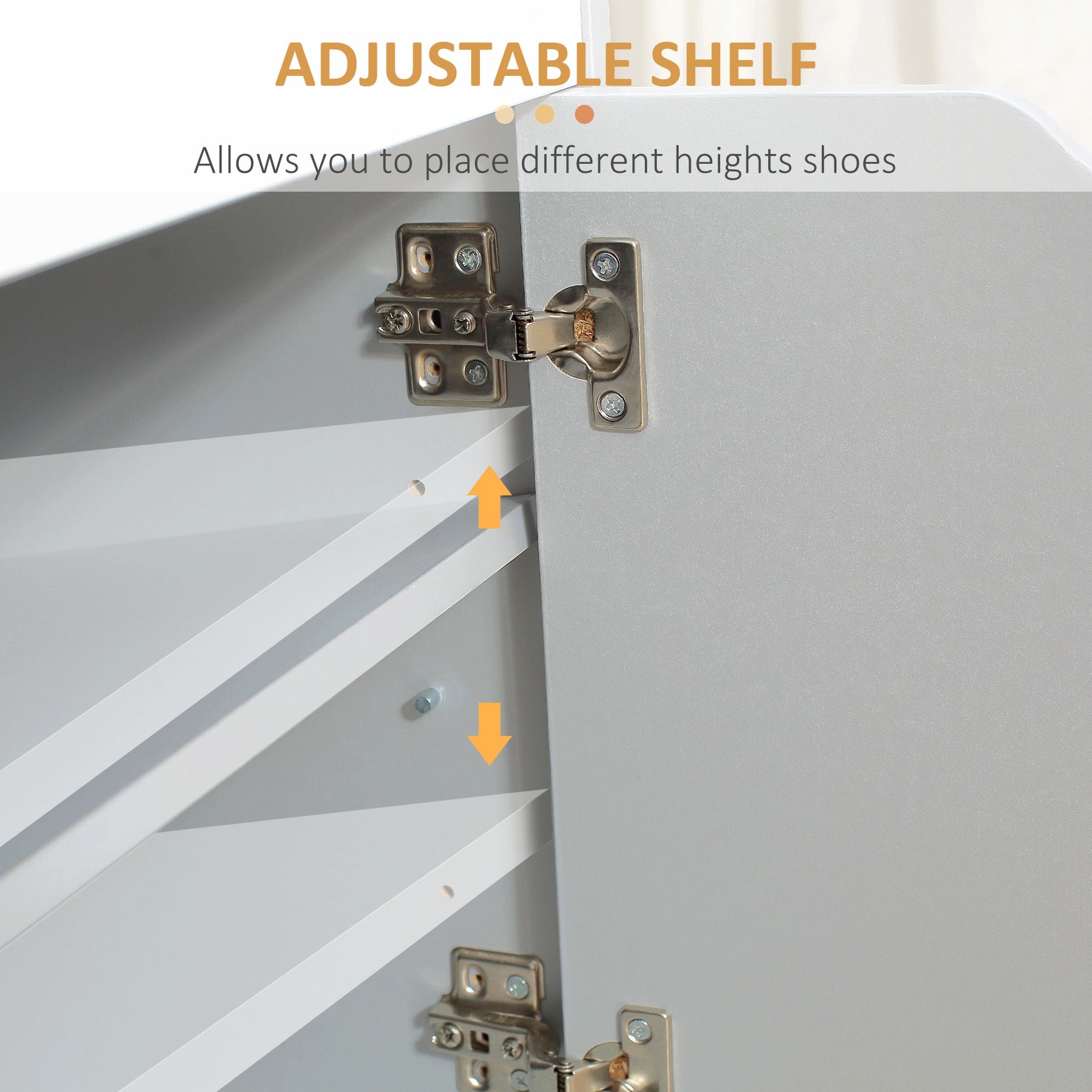 • 2-tier cabinet with adjustable shelf provides various storage space to store shoes