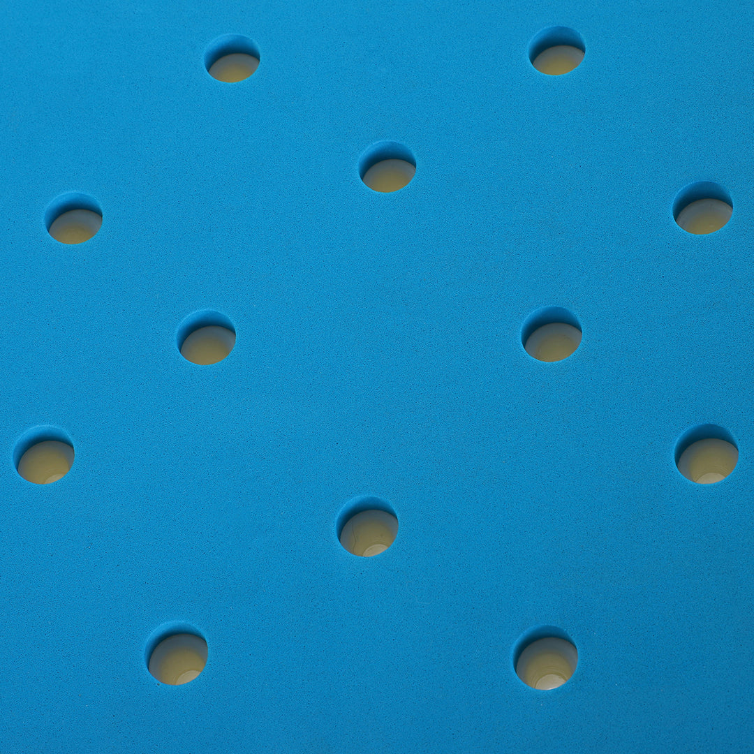 - Oblong plastic seat, slightly curved for comfort with a padded panel and water drainage holes