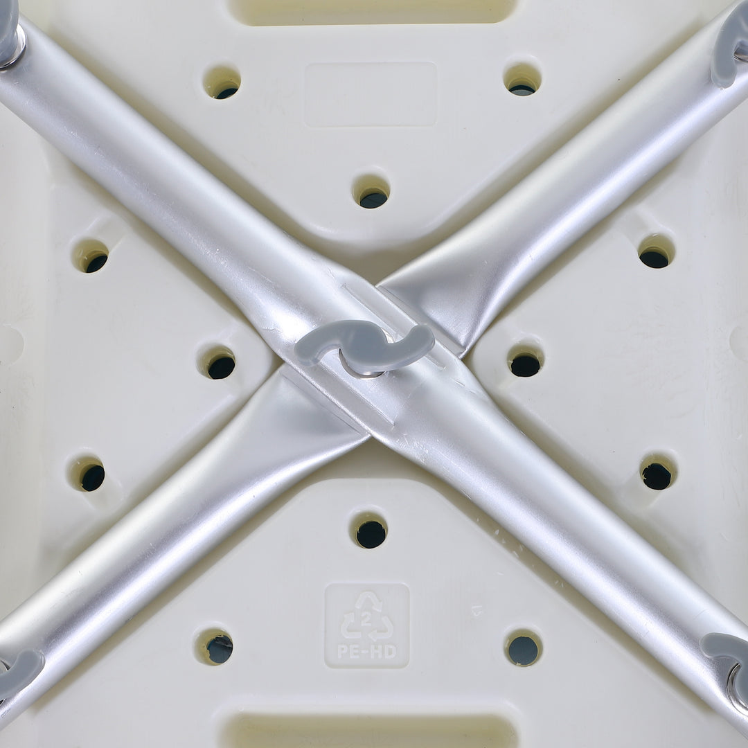 Make showering and bath times easier for those who require extra assistance, thanks to this bath chair from HOMCOM. Using aluminium for strength and support even in the water, as well as resilience to rusting and moisture damage, the frame is fitted with four legs which can be adjusted to six different heights Ð allowing you to set it to a level which is safe and comfortable. On the top, an slightly curved oblong seat is placed, with a small padded cushion for comfort and drainage holes for the water. ItÕs finished with four non-slip feet to keep it in place. A safe way to shower and bathe when alone.