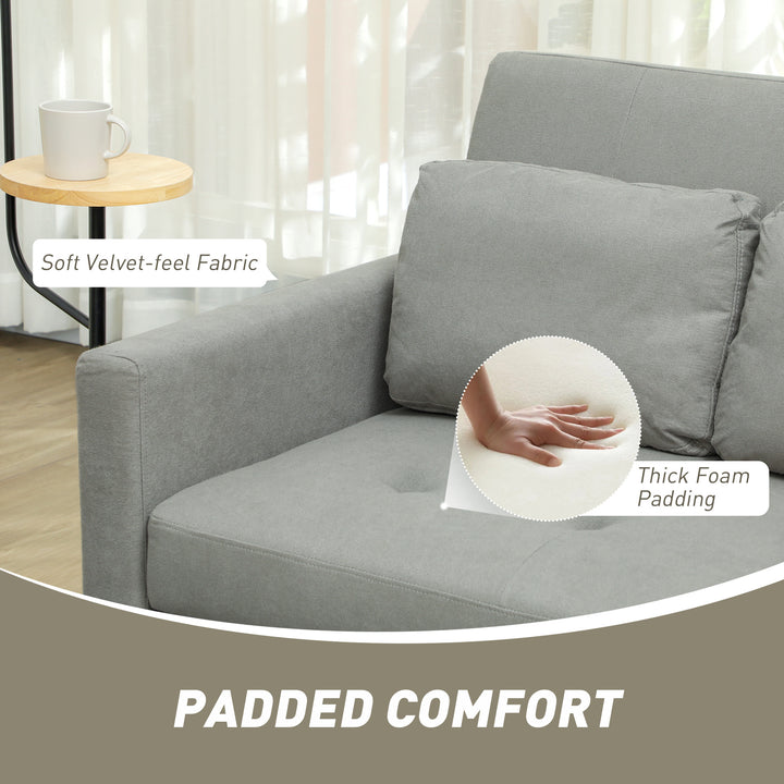 A small place to relax and rest - day and night. This HOMCOM sofa bed serves as a two-seater sofa for daytime use and a bed for nighttime use. Filled with foam, this is a soft and comfortable piece to sink into, with the high back and arms giving plenty of support. Two pillows included for extra comfort. The back angle is adjustable between 105°, 130° and 180°. Wrapped in soft velvet-feel upholstery, finished with two handy side pockets.
