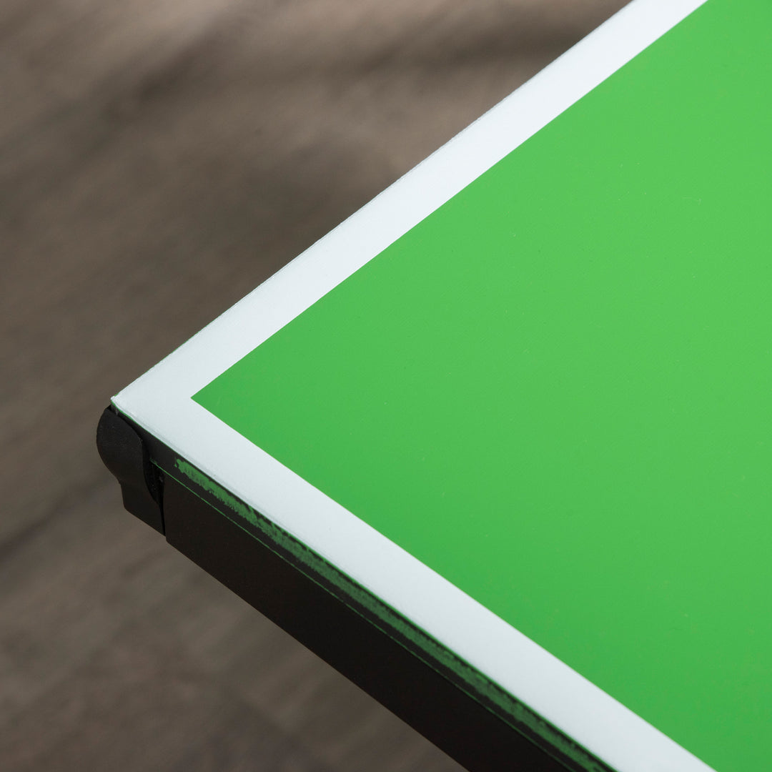 The HOMCOM Mini Ping Pong Table is ideal for any ping pong lover tight on space. The table stands at regulation height( 76cm) with a surface( 182cm x 91cm) of a regulation-sized table. Each half of the table is near a square that can stand alone, perfect for card games or any of your other multi-use table needs. It is suitable for all ages to have a little fun. Just take a short break of work with colleague or play with kids on weekends.