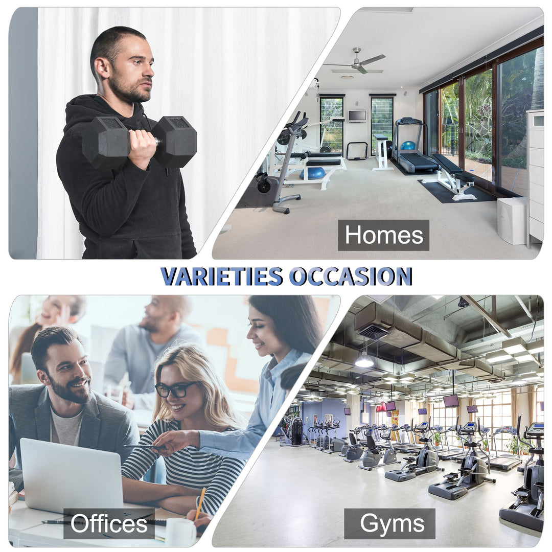 Strengthen your muscles in the most effective and easiest ways - go for this single dumbbell from HOMCOM. The 20kg weight is suitable for those accustomed to the heaviness only and it can be used almost anywhere in the home and outdoors thanks to the small size. The frame is made from steel for a strong core and features knurl indents for grip. Both ends come with the weight, made into a hexagonal shape so it doesn't roll away. Finished with the weight number carved into the protective rubber cap so you know which you're using.