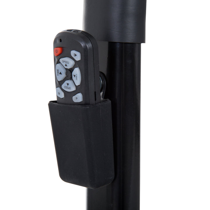 Get your fitness into gear with this treadmill from HOMCOM, it helps you to get fit and increase your stamina. The LCD monitor on the front can also track your time elapsed, distance, speed and calories burnt, which will keep you more focused whilst working out. It is finished with an emergency button and safety key which immediately stops it moving when pressed from safety. The treadmill can also be fold and is equipped with two wheels so that it is easy for storage when not in use. A must-have for when you’re stuck indoors and want to keep active.