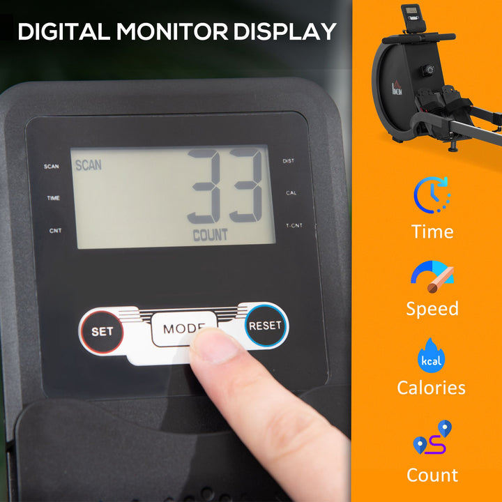 Keep fit with this rowing machine from HOMCOM. With 16 levels, there's a resistance setting to suit your needs, whether you're a beginner or expert. It's great for working your back, legs, core and arms – you'll gain strength, improve cardio and burn calories. Track your progress with the digital monitor, which displays time, speed and calories burnt. Suitable for home use, it can be folded and stored away, saving space.