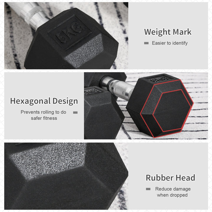 This pair of hexagon dumbbells with rubber is perfect for your fitness regime, suitable for home, gym and office exercise. Each weight is built with metal and rubber, which is durable and not easy to scratch the floor. The knurl guarantees your safety when you do alternating dumbbell curl, overhead shrug, dumbbell triceps kickback, etc. It's an ideal way to make exercise routine with the dumbbells.