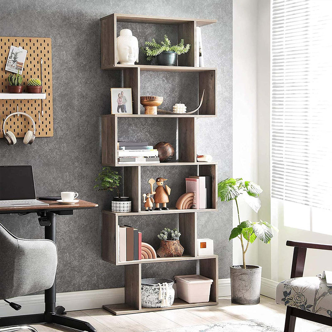 VASAGLE Wooden Bookcase, Cube Display Shelf and Room Divider, 6-Tier Bookshelf, Freestanding Shelving Unit, White LBC61WT