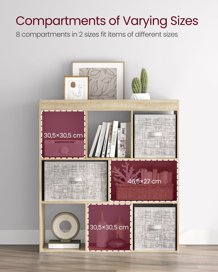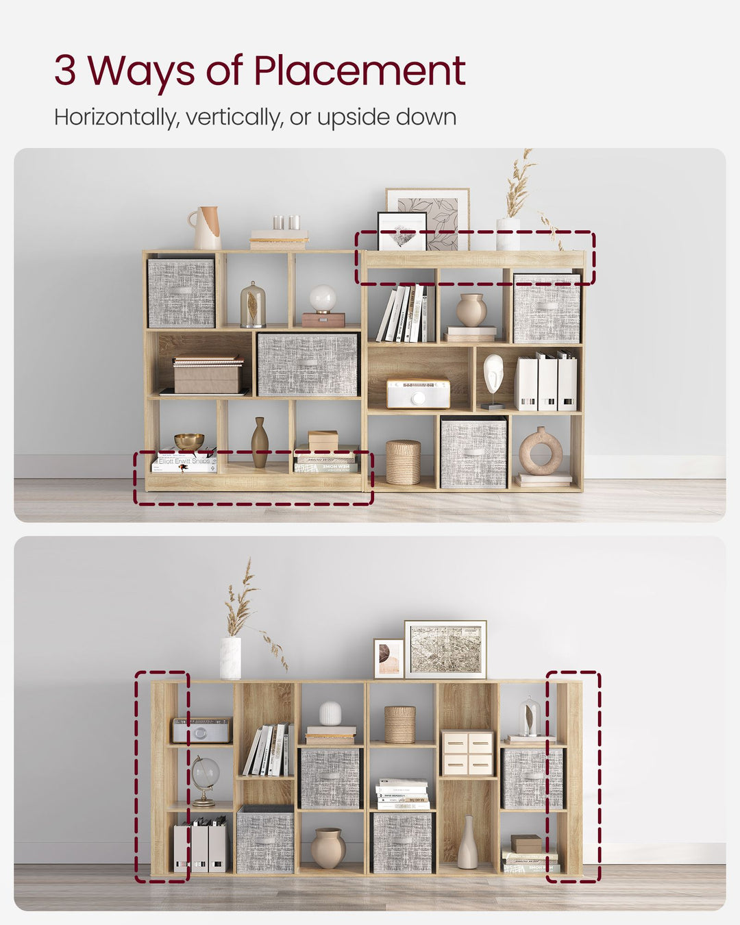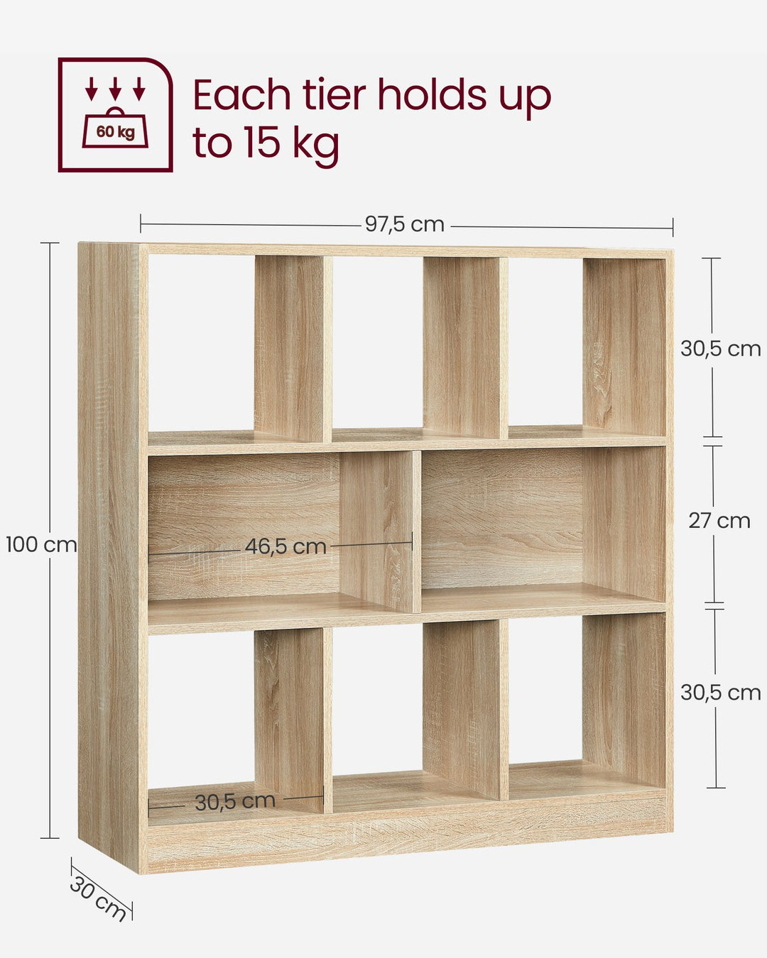 VASAGLE Wooden Bookcase with Open Cubes and Shelves, Free Standing Bookshelf Storage Unit and Display Cabinet, 97.5 x 30 x 100 cm (W x D x H), Oak LBC52NL