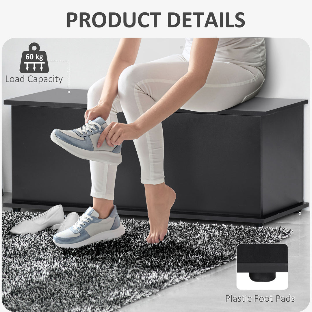 HOMCOM offers the ideal storage solution to all your organising needs with this simple modern designed storage chest. The sturdy wooden construction makes the lid and the internal space hold weight up to 60 kg each. Constructed to offer an ideal decorative and practical addition to any room decor.