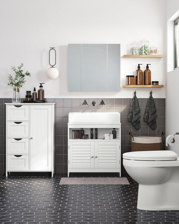 VASAGLE Cupboard Bathroom Cabinet with 4 Drawers and 1 Wardrobe Compartment in White Wood 55 x 81 x 30 cm (B x H x T) LHC41W