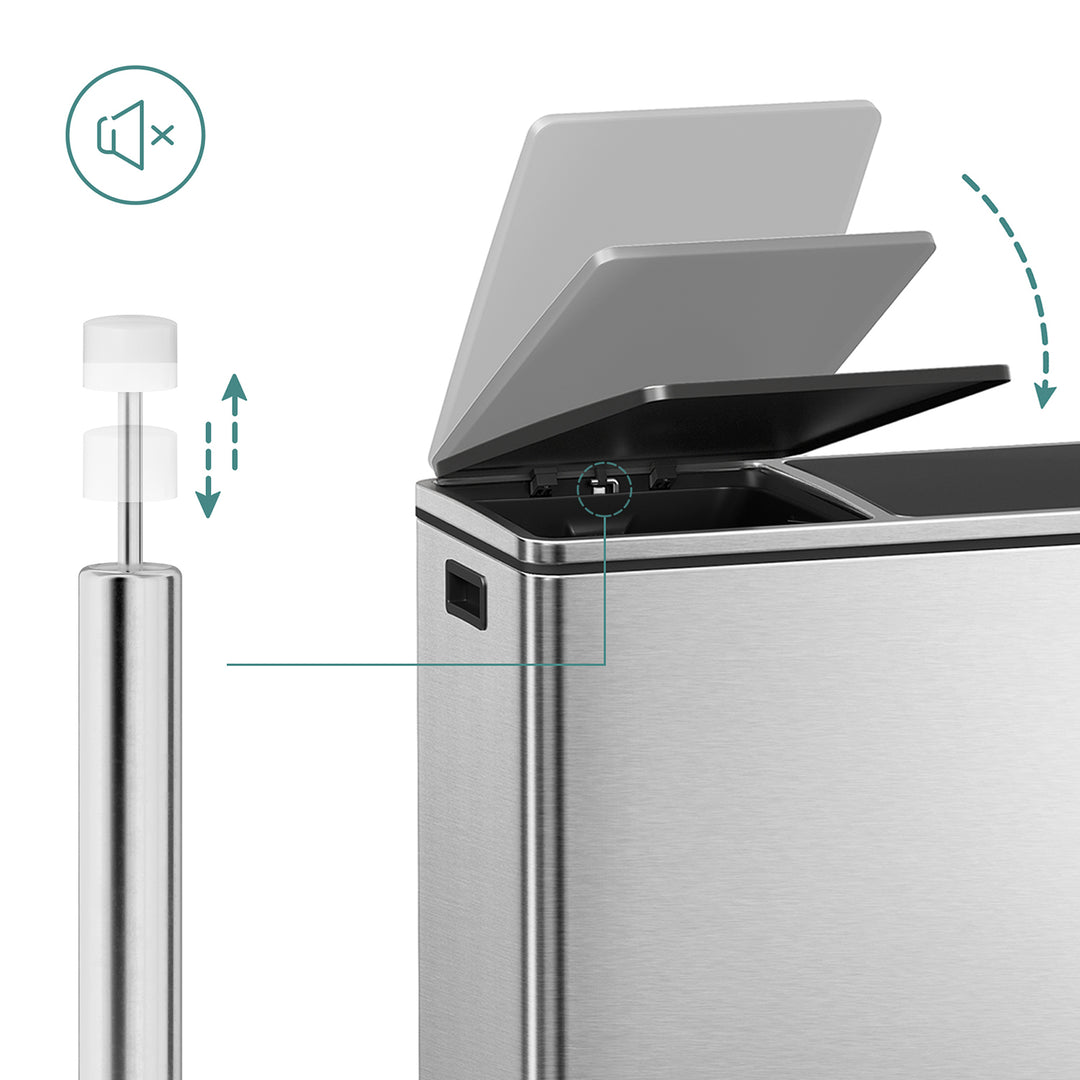 SONGMICS Double Recycle Pedal Bin, 2 x 30L Rubbish Trash Can with Dual Compartment, Fingerprint Proof Stainless Steel, Plastic Inner Buckets and Carry Handles LTB60NL