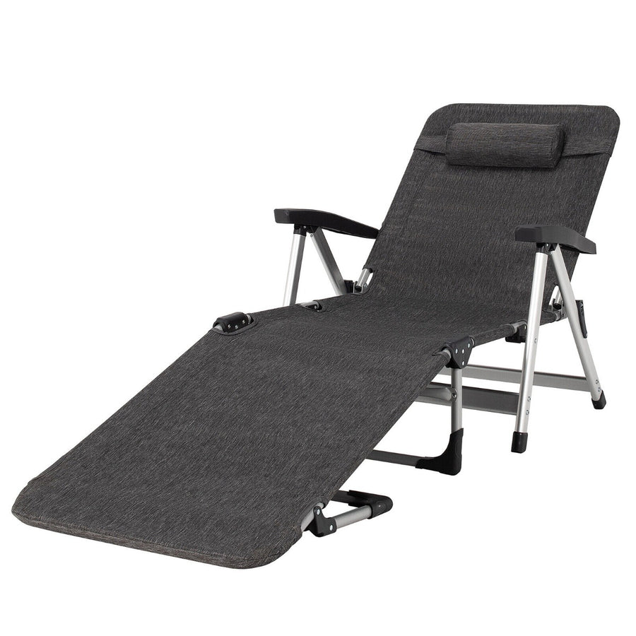 Rattan Sun Lounger with Cushion and Adjustable Feet