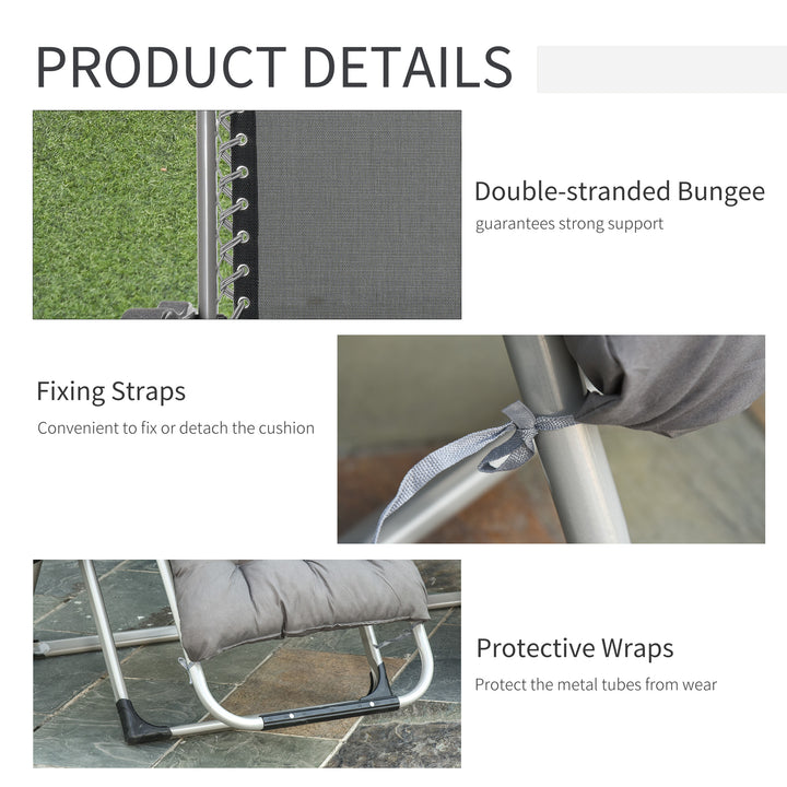 This outdoor patio lounge chair set from Outsunny is the perfect way to enjoy a lazy sunny afternoon on the patio, balcony, deck, or in your own garden! Its curved metal frame makes this lounger perfectly fit your body and gives you strong support. It has a soft cushion and pillow, which is easy to be fastened or removed according to your needs. Have a seat or even lying in this lounge chair and let your worries wash away as you enjoy the soothing outdoor view.