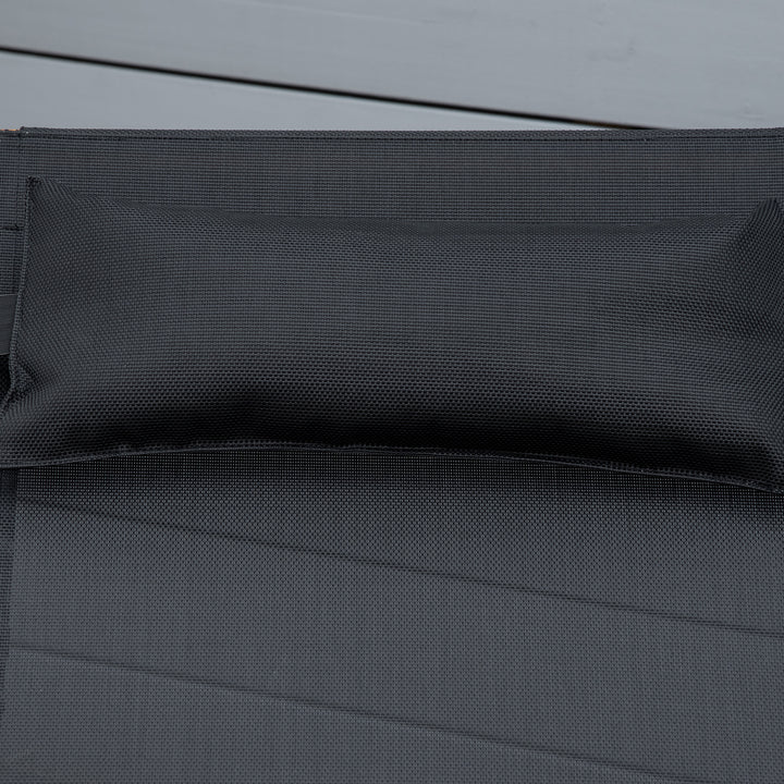 Outdoor lounging just got a lot better. Pair your days outside with this Outsunny lounger for complete relaxation. Using solid wood to form the frame, it is able to handle up to 120 kg effortlessly, with a three-level adjustable back for in-control supports crafted into a smooth curved shape that better adapts to your body shape. It's fitted with a breathable mesh fabric seat that holds your body in place, with a removable pillow for extra comfort and support to the head and neck.