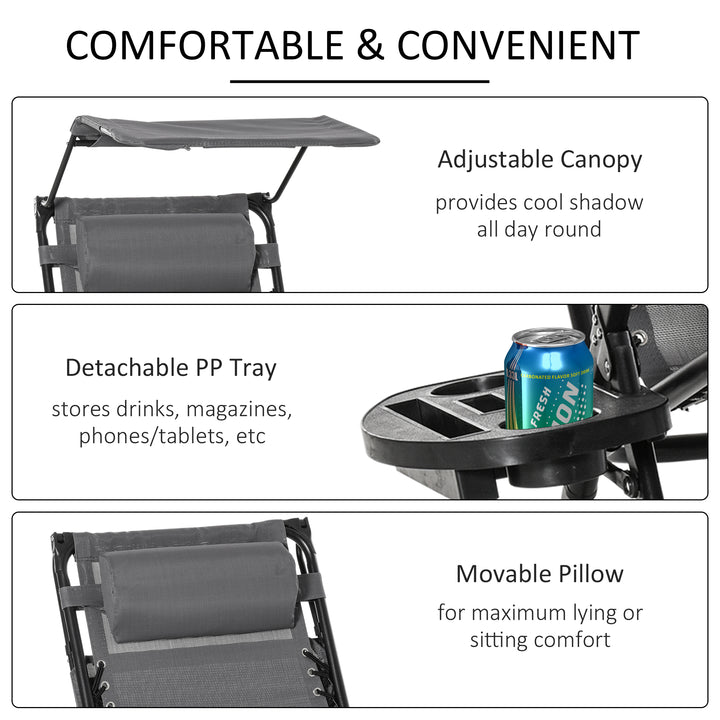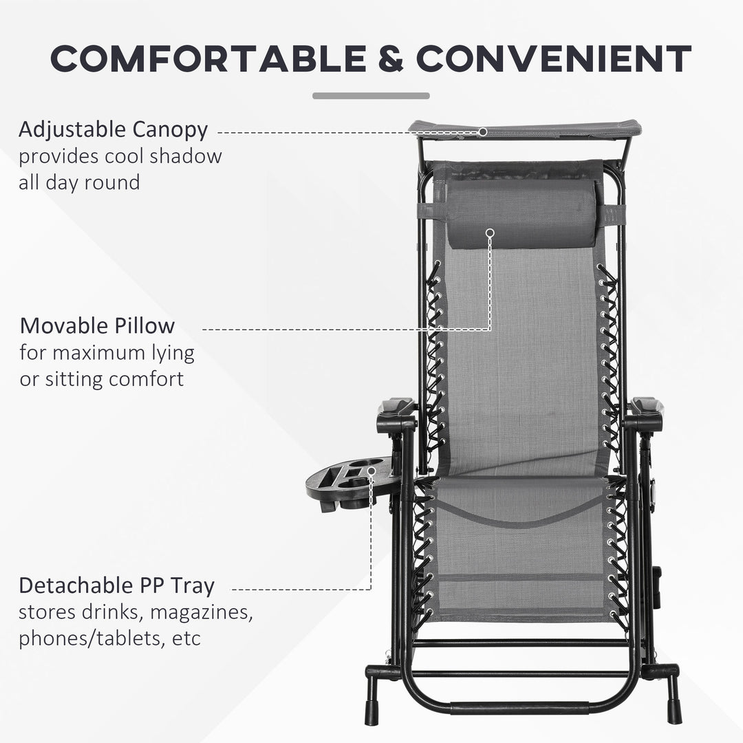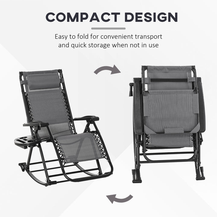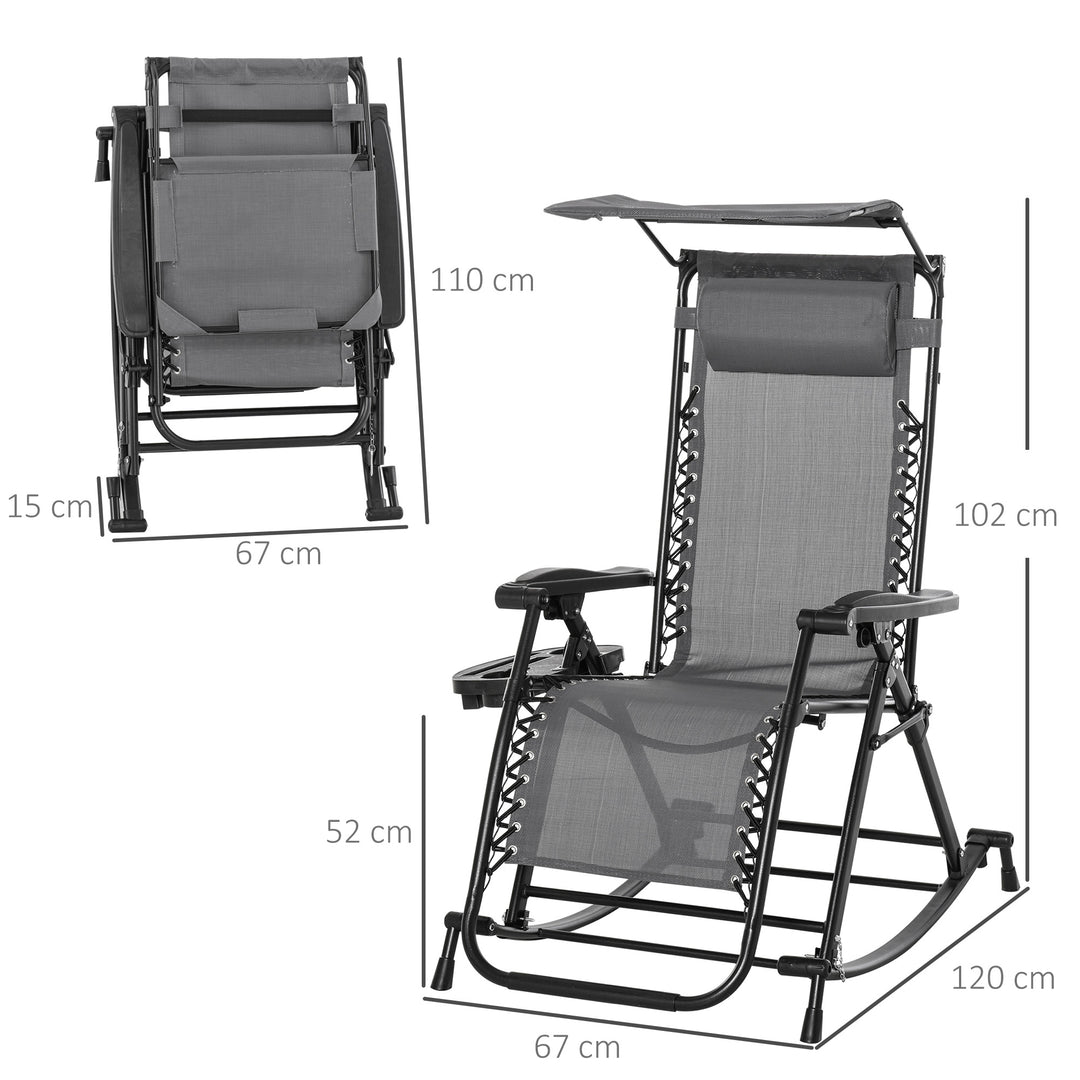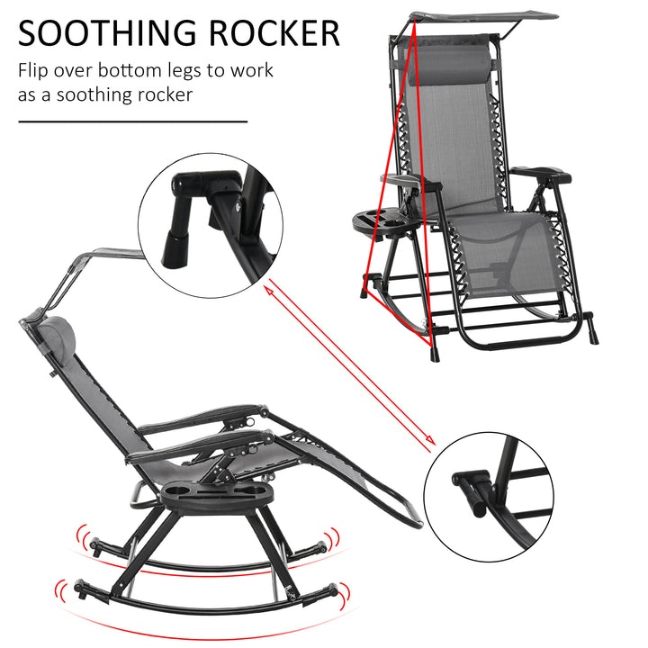 This rocking sun lounge chair from Outsunny is the perfect gateway to total relaxation in the sun. The powder-coated steel frame forms a tough structure, where the seat is attached to the base for a floating zero-gravity feel. The back freely adjusts between a 10°-35° angle so you can lie back to a position you like. The fabric seat and padded headrest make it comfortable, finished with a handy side tray and top canopy to shield you safely.
