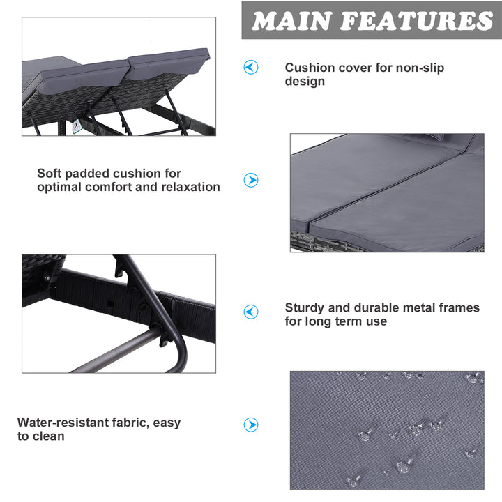 Soak up the sun when it comes out to shine with this two-piece set from Outsunny. Formed of two matching and stylish mixed grey sun loungers, each one is made with a powder coated metal frame for strength, with wicker rattan wrapped on top for durability and protection outdoors. Adjustable to five different positions for optimal comfort, each lounger is fitted with a padded cushion which covers the full length and width, so once you sink in, you’ll never want to get off. The set comes complete with an extra pillow, providing extra comfort and support when wanted. The perfect set to enjoy the sun now as the hotter weather approaches this season.