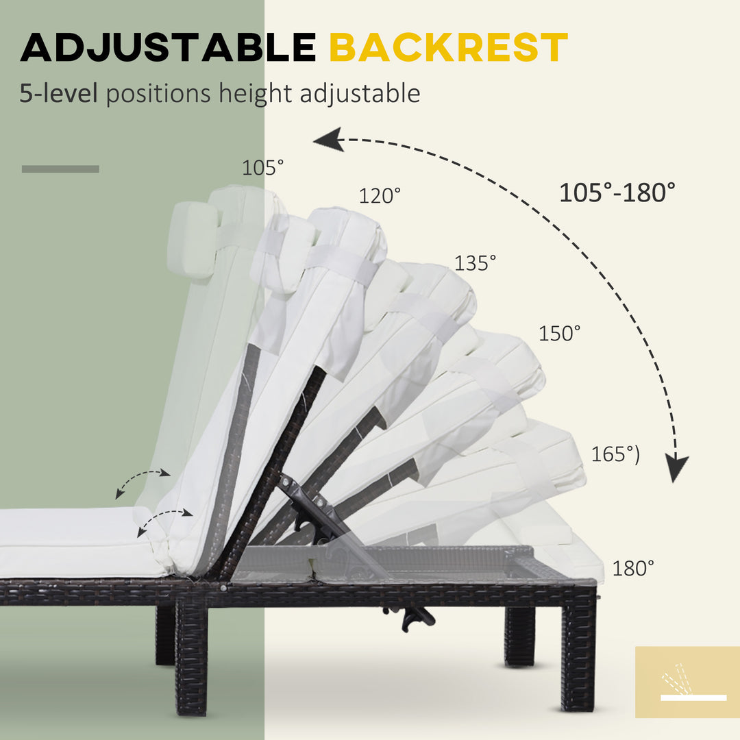 Lounge in luxury, whether in the garden or patio outdoors - thanks to this longline sun seat from Outsunny. Formed of a powder coated metal frame, with PE wicker wrapped around: weather-resistant, durable and beautiful. The back sets to five different positions so you can chose an angle most comfortable for you. The comfortable longline seat comes with a removable cushion; the polyester cover can be washed to keep it clean. Style and comfort.